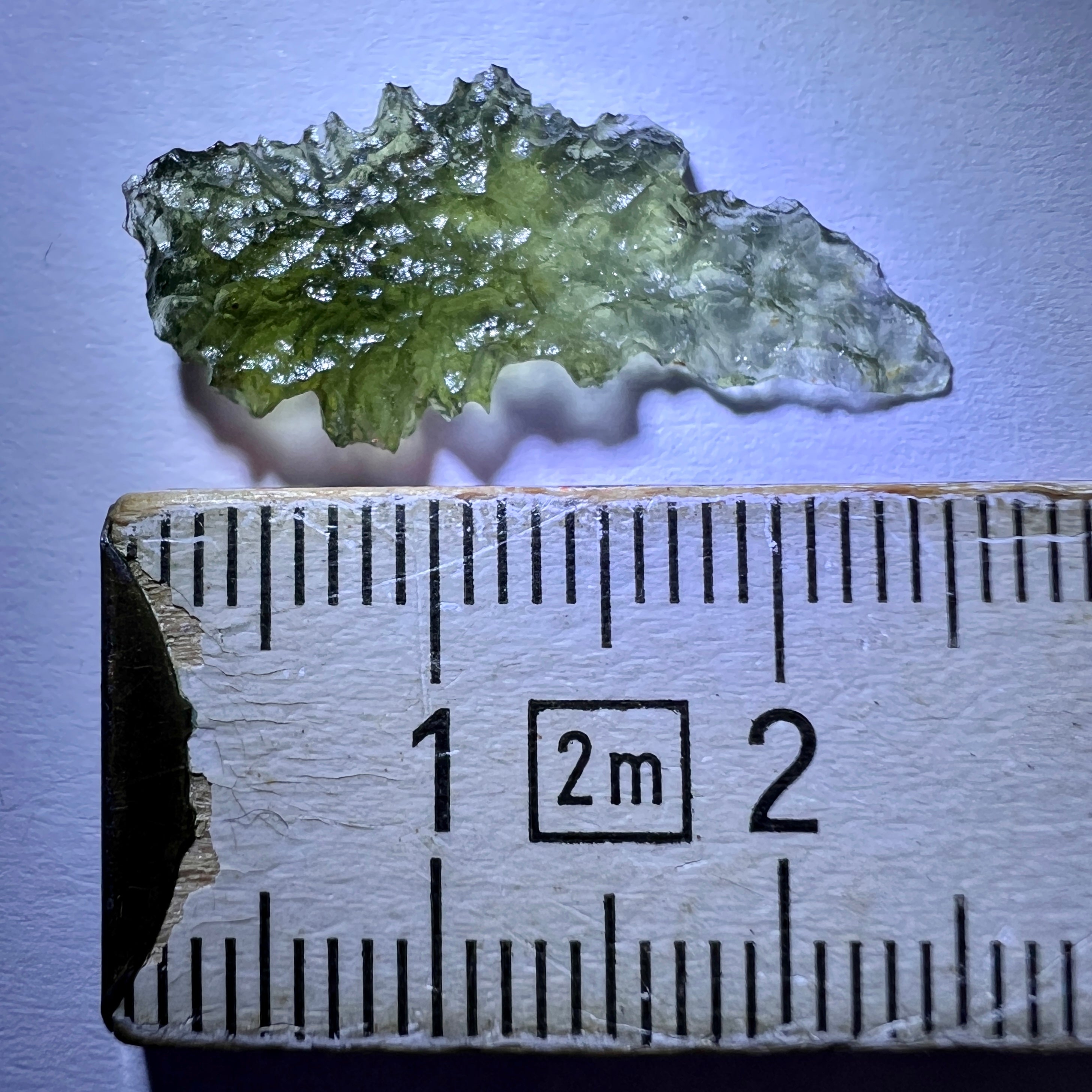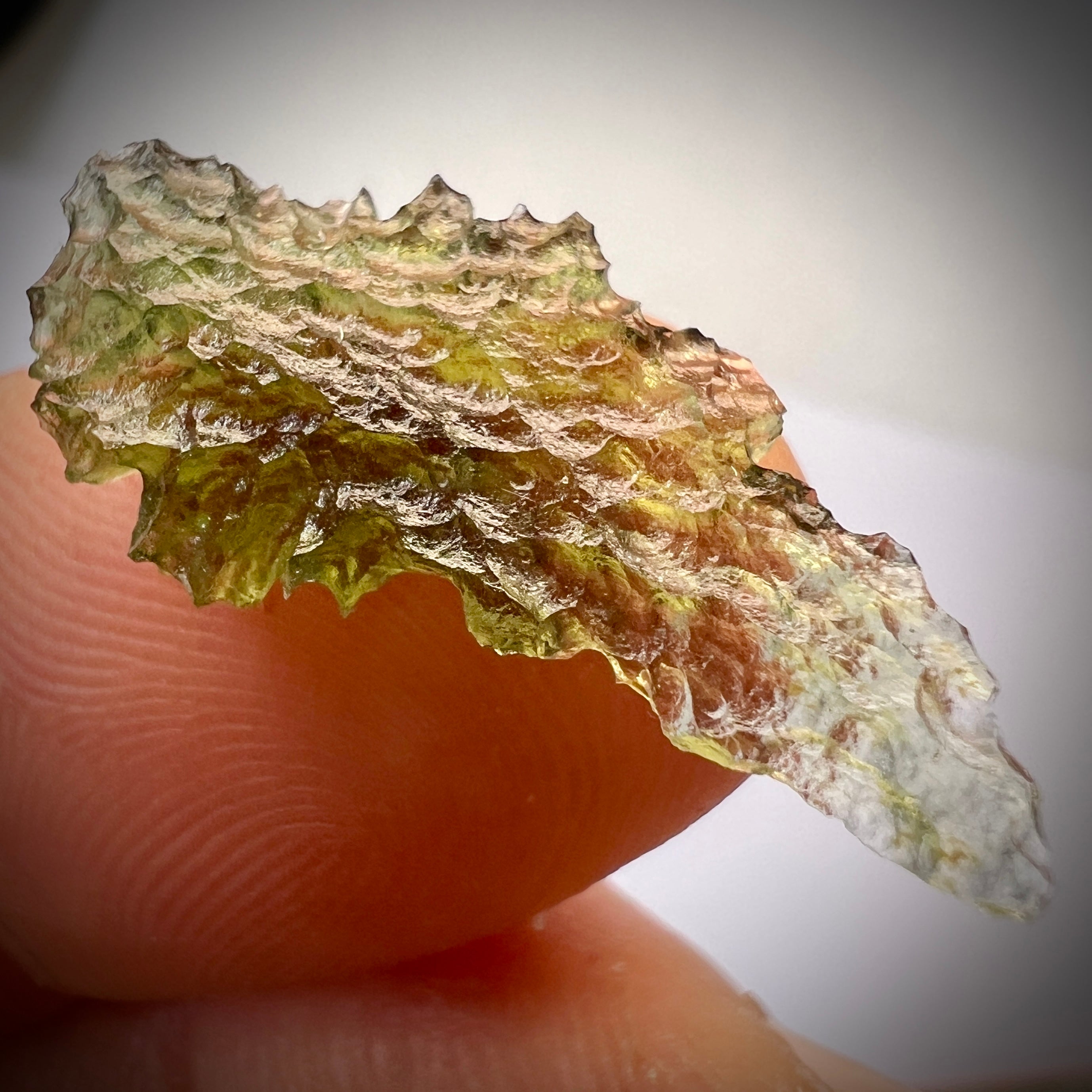 This 0.92g Moldavite from Maly Chlum, Czech Republic showcases a beautifully etched surface with natural ridges and grooves that tell the story of its cosmic origin. Its deep green color shifts subtly under light, revealing hints of translucence and inner depth. Every contour is shaped entirely by nature, untouched, uncut, and unpolished, preserving its raw authenticity.