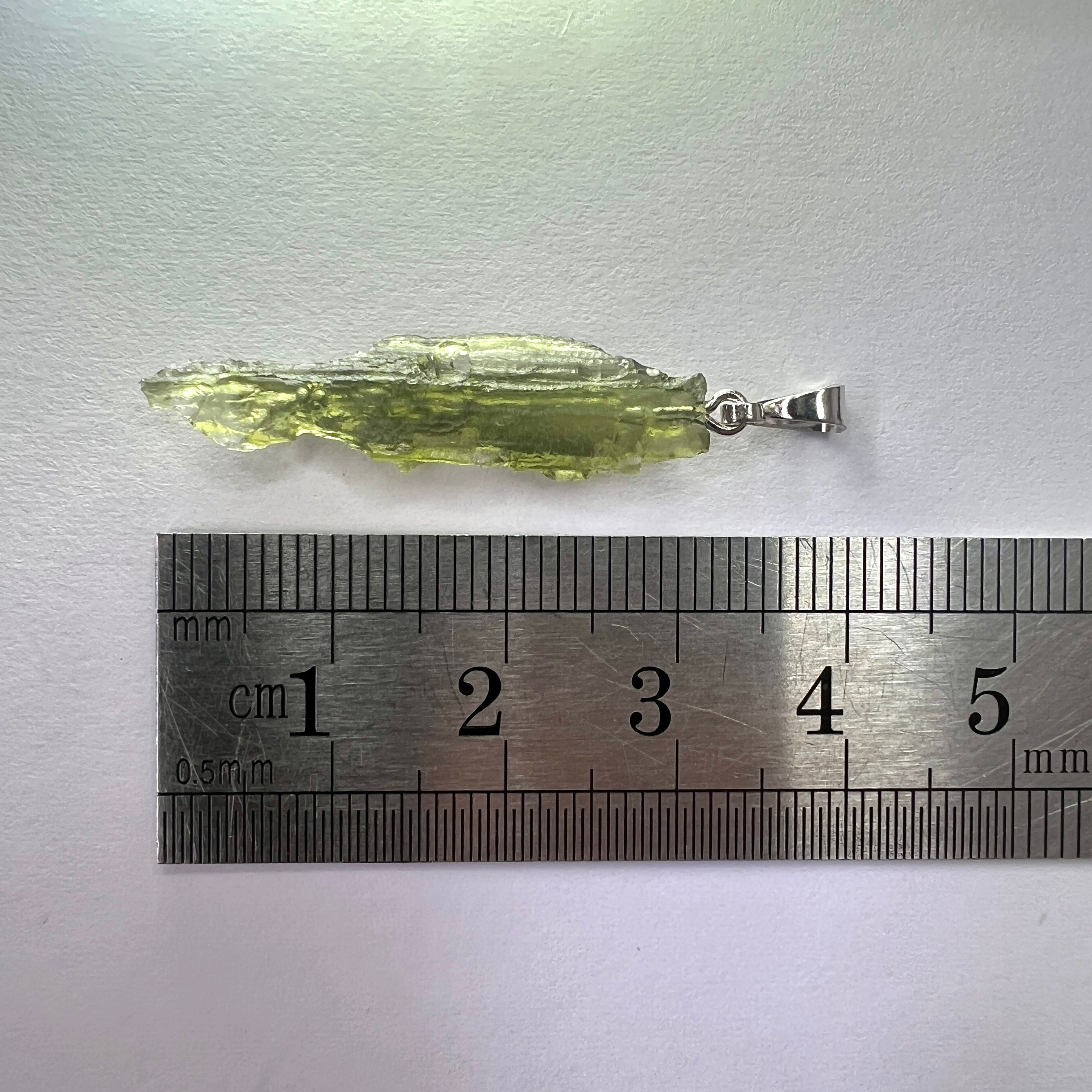Tiny Moldavite pendant featuring a genuine, whole and undamaged Moldavite specimen. Not a chip or a fragment of a larger piece. Total weight including setting : 0.92g