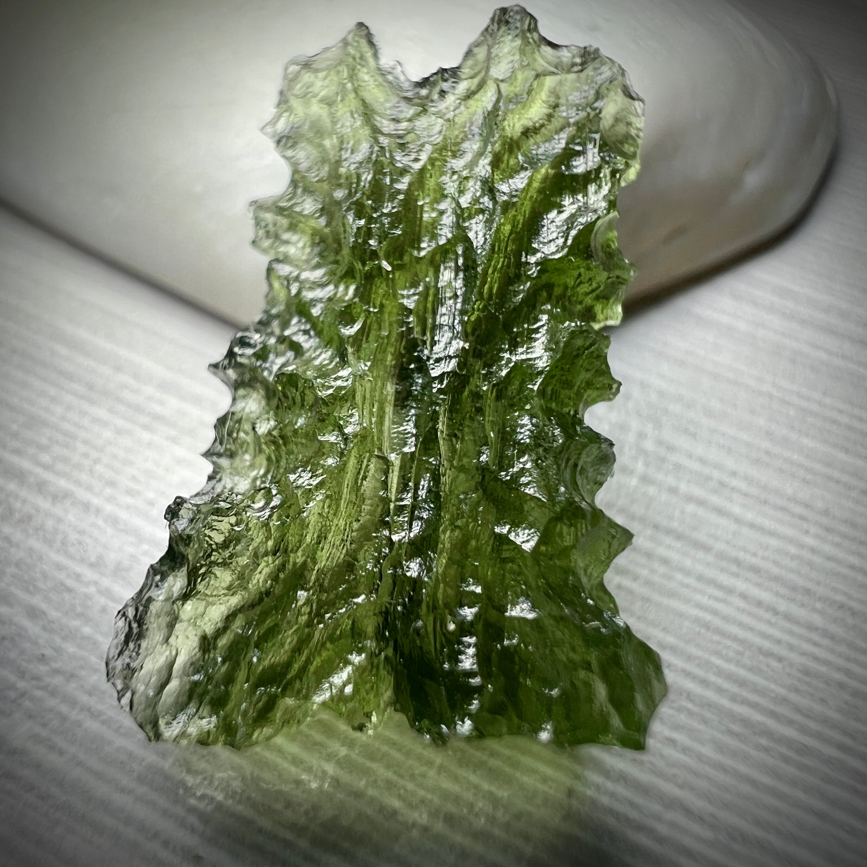 Authentic Moldavite has a distinctive surface texture, natural pits, and a translucent green color that varies in intensity. It is also lighter than glass imitations. To ensure authenticity, purchase Moldavite from reputable sources, and consider requesting a certificate of authenticity.