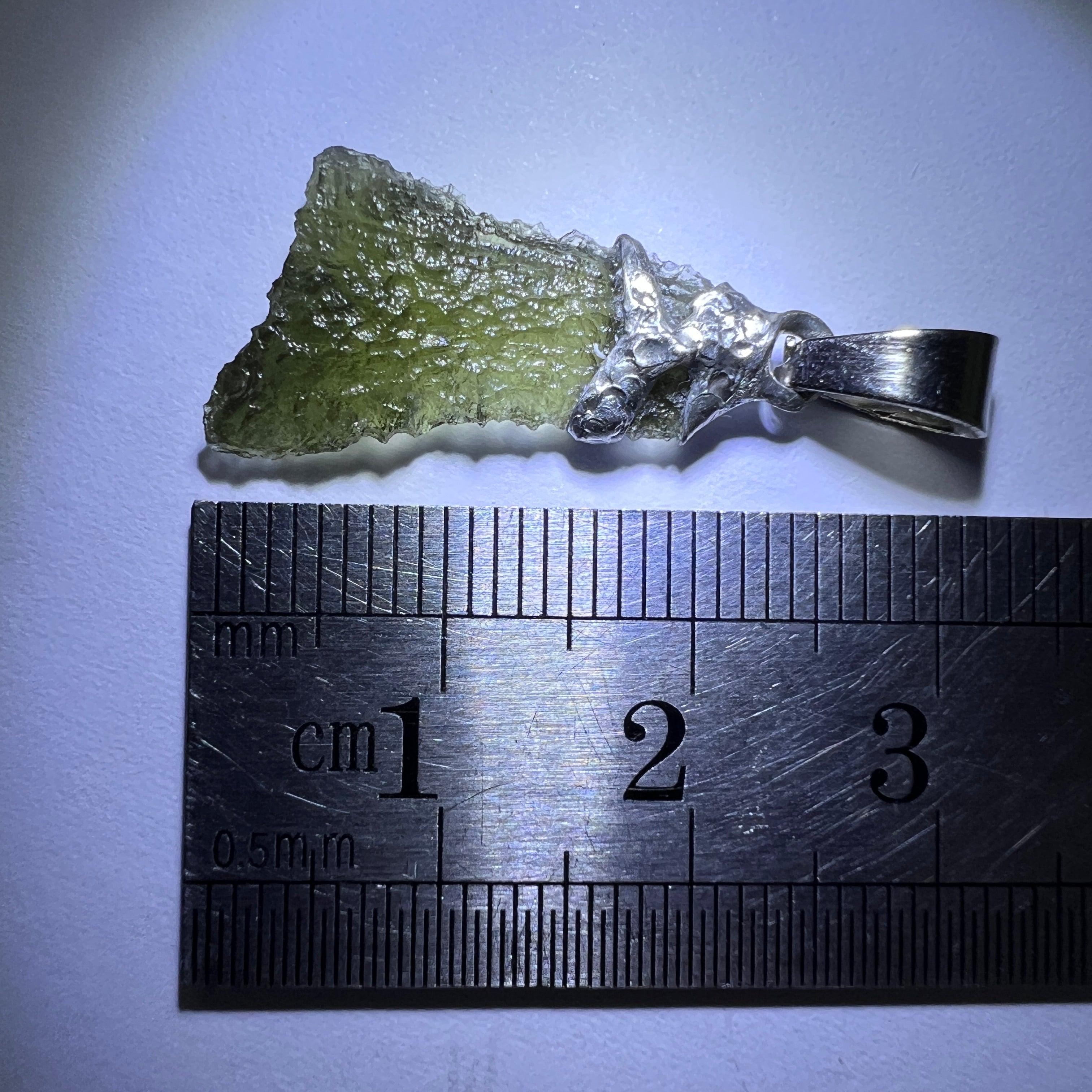 Charming, soft soldered Moldavite pendant featuring a 1.38 gram Moldavite specimen from Chlum.