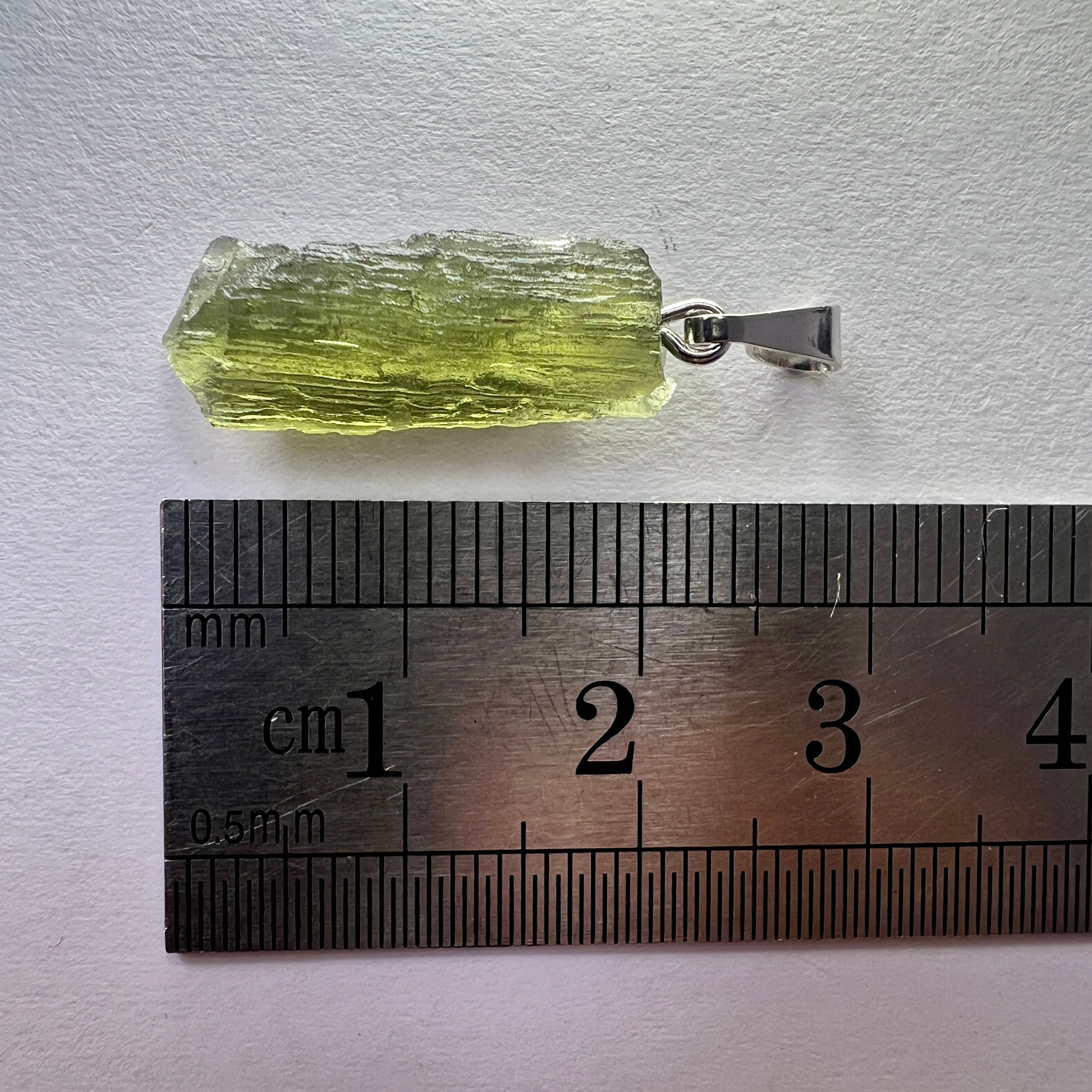 Tiny Moldavite pendant featuring a genuine, whole and undamaged Moldavite specimen. Not a chip or a fragment of a larger piece. Total weight including setting : 1.38g