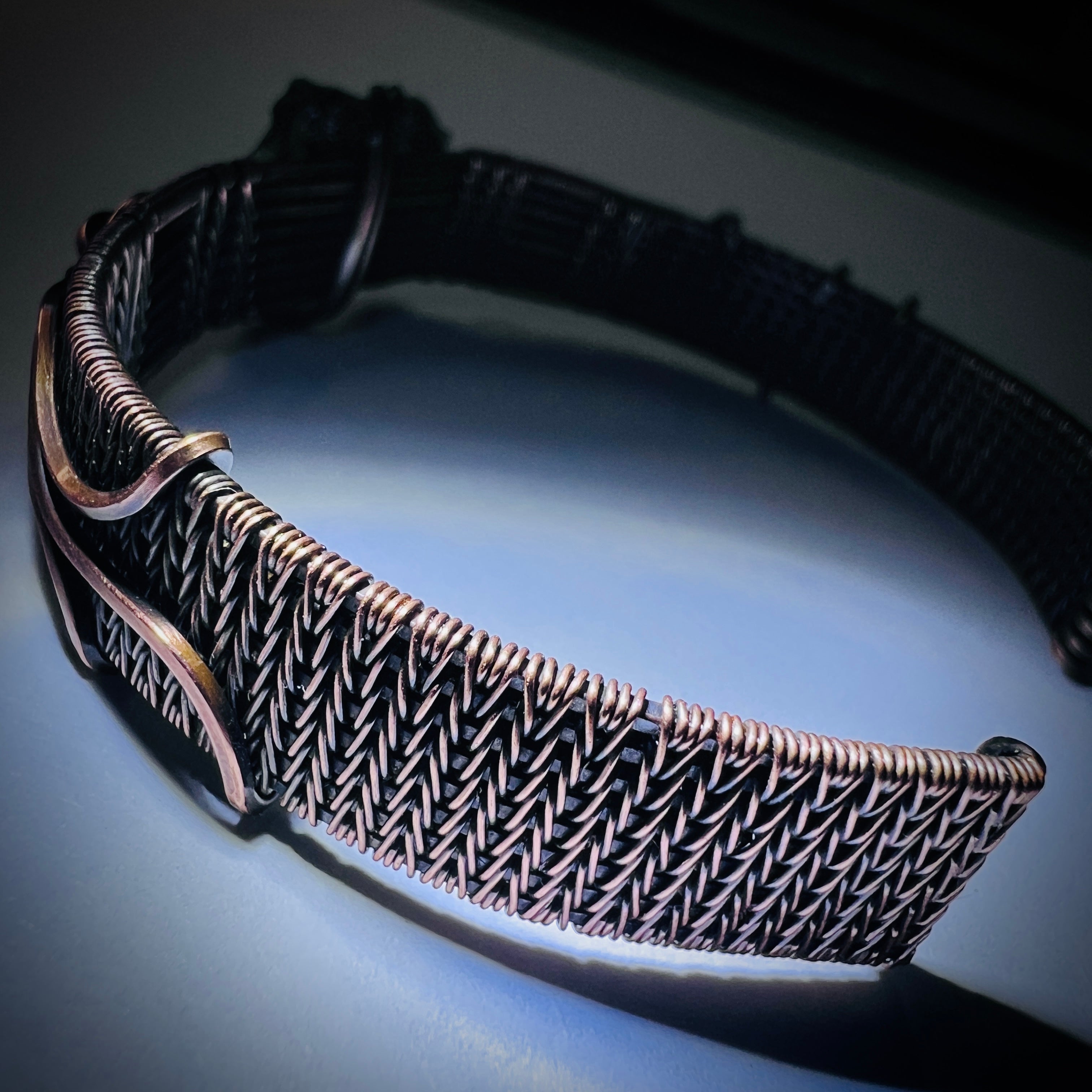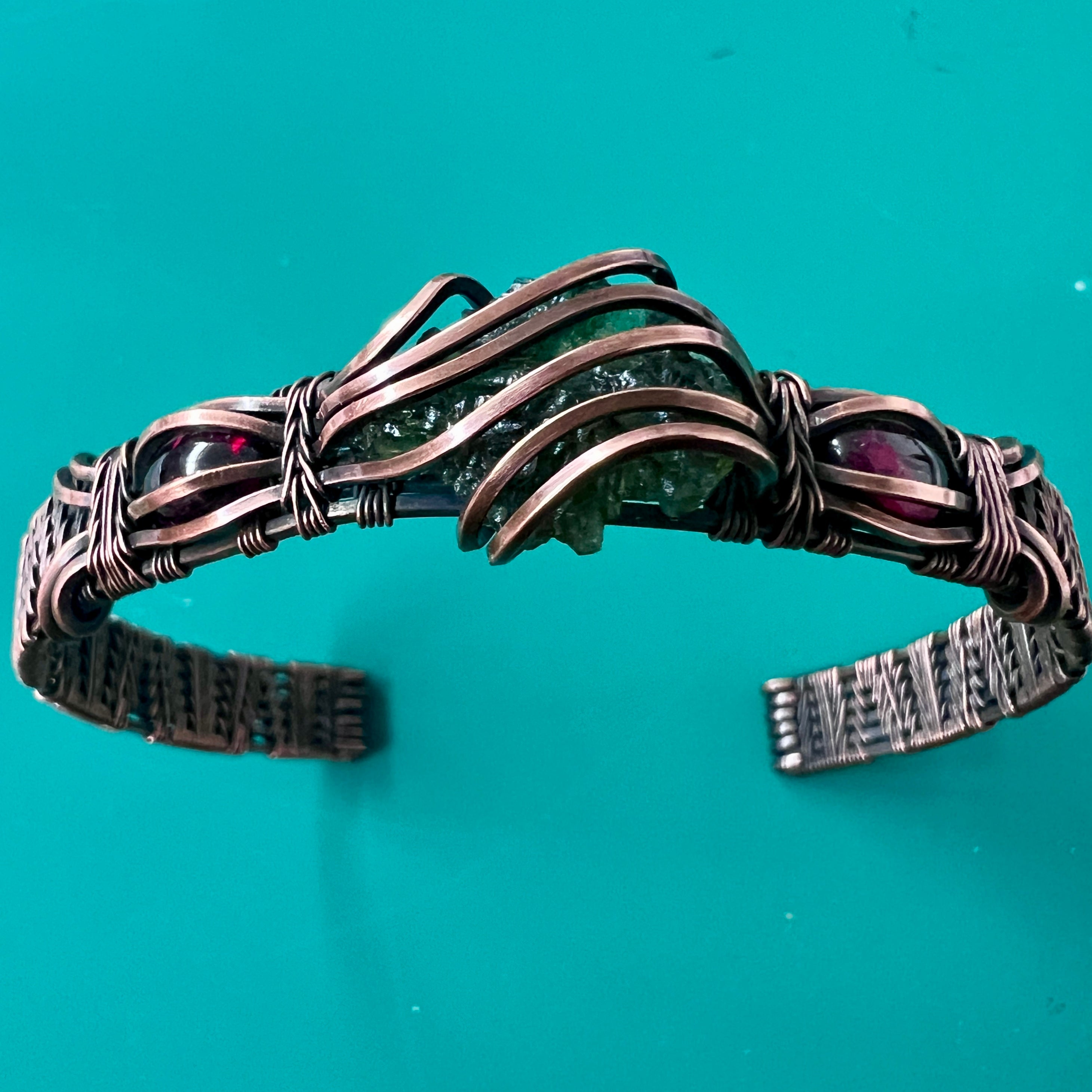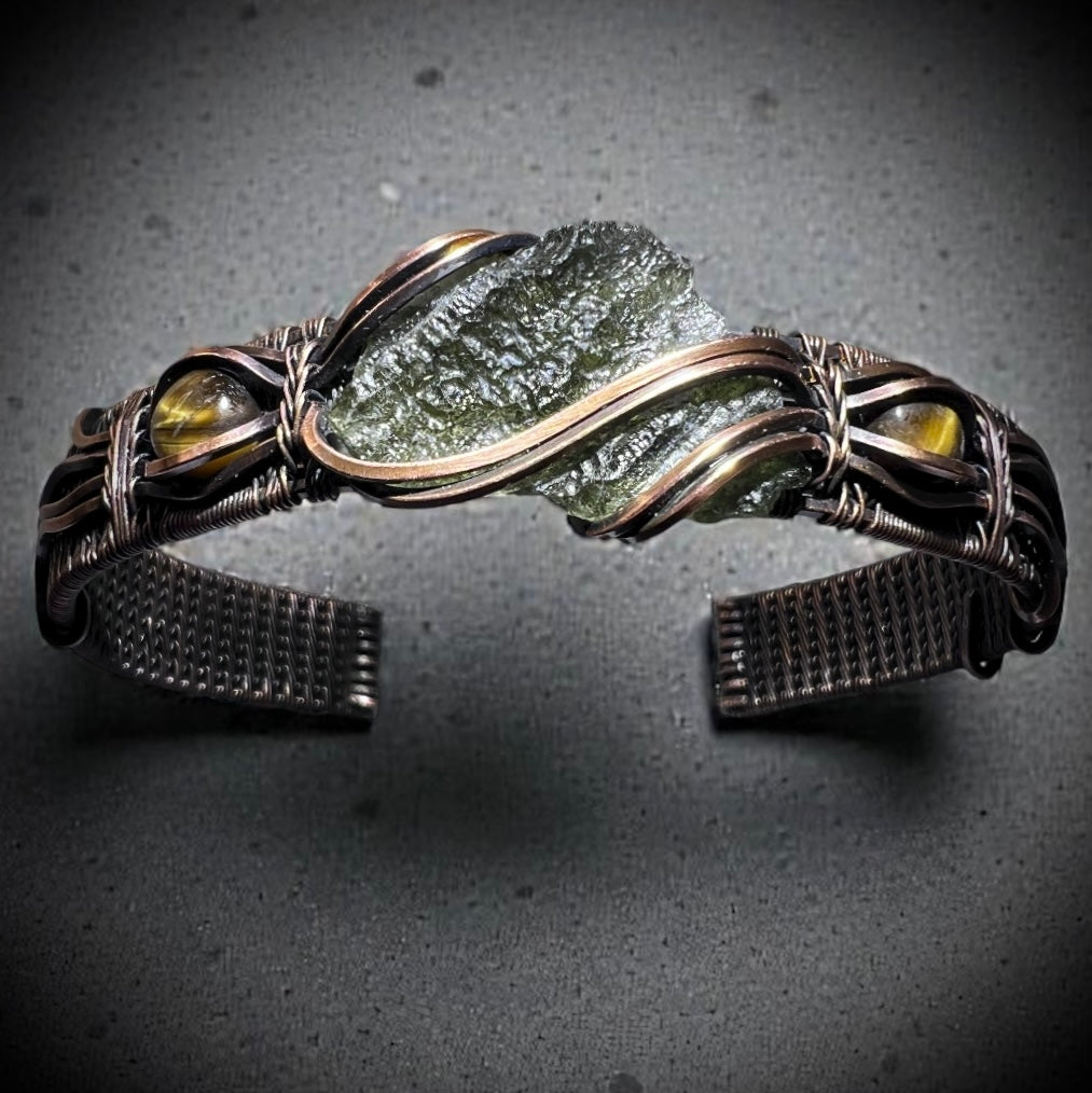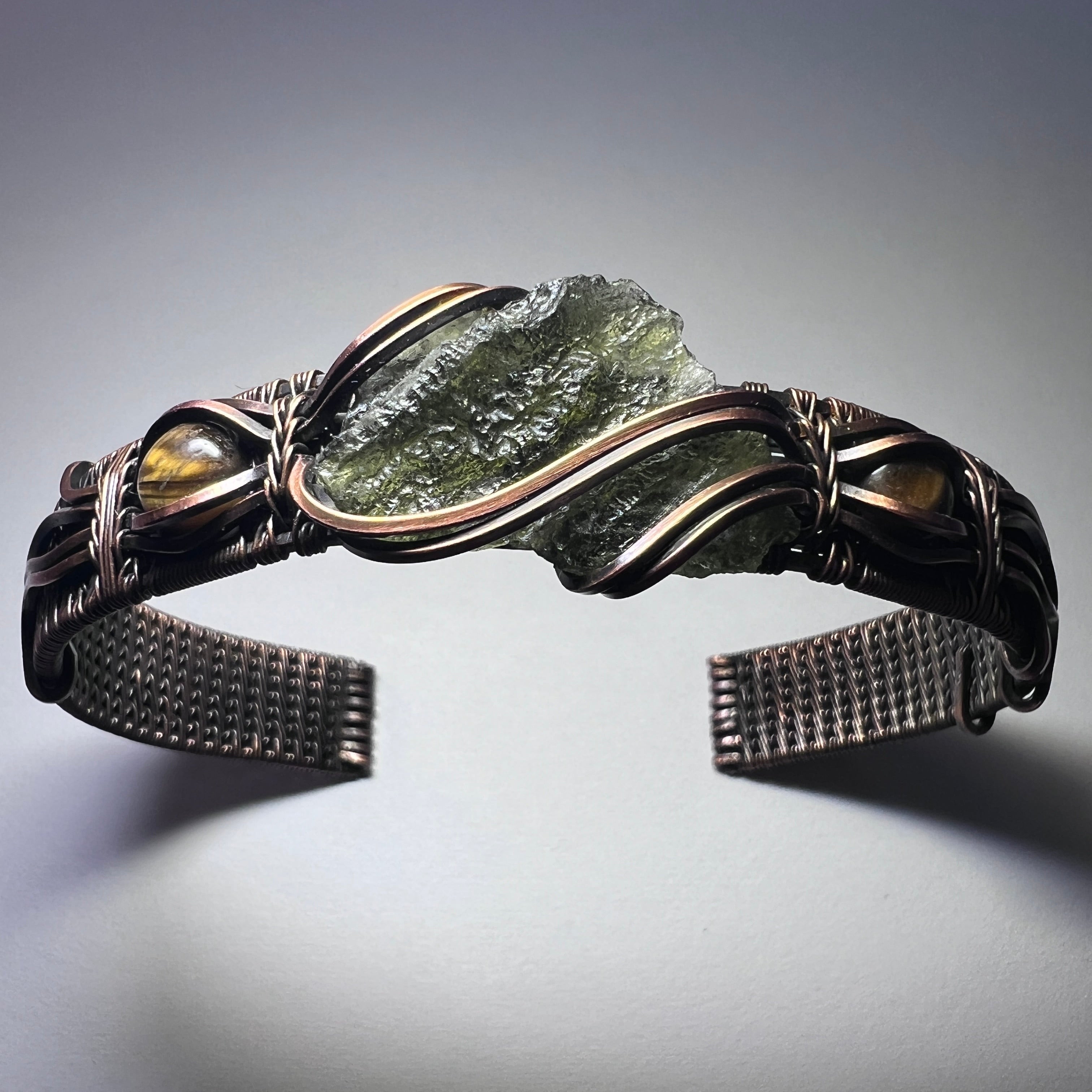 💜 Moldavite & Tigers Eye Copper Bracelet — 1.3g Chlum