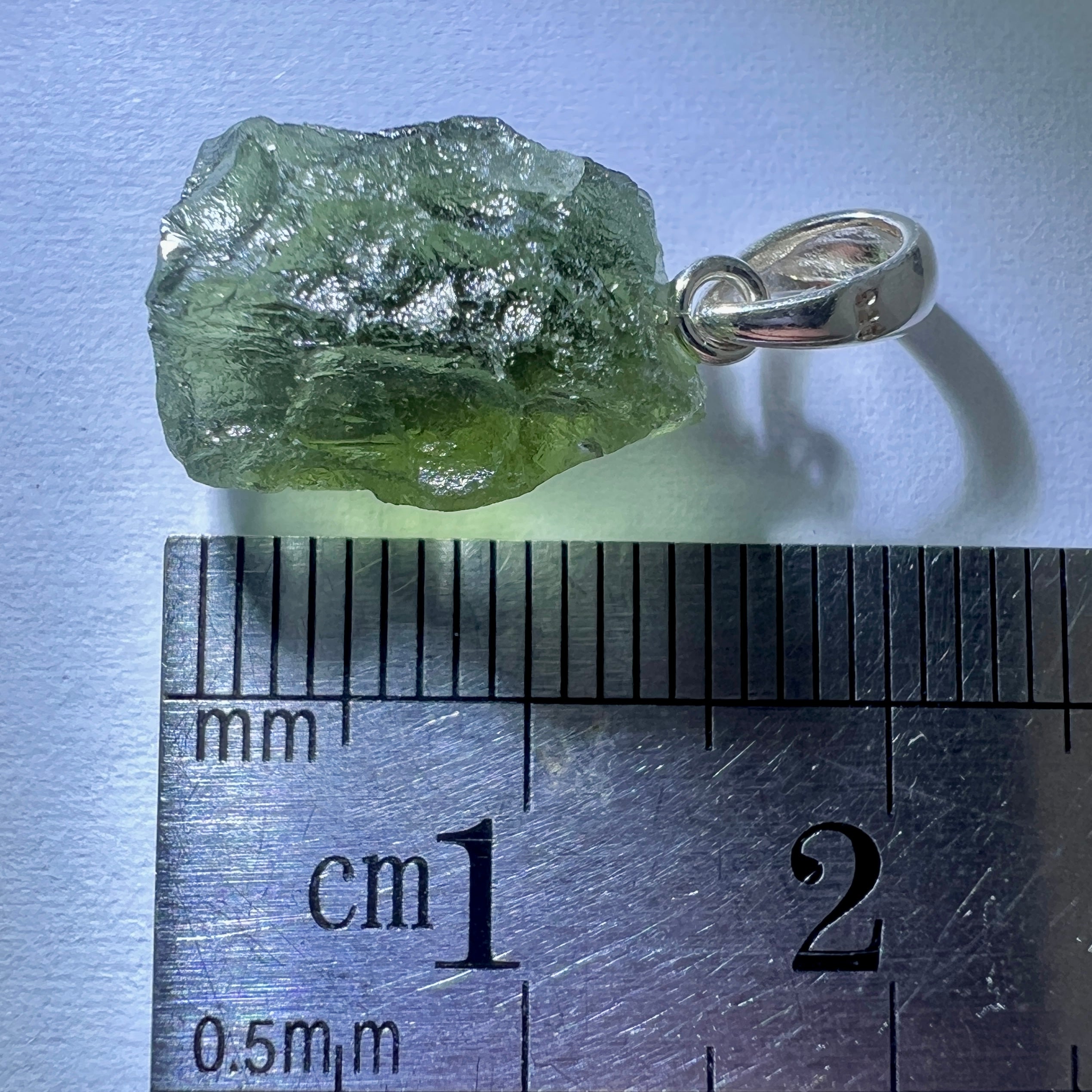 This style keeps the design intentionally simple so that the Moldavite itself remains the true focal point. With no heavy metal frame surrounding the stone, its natural texture, shape and translucent green colour can be admired without obstruction.
