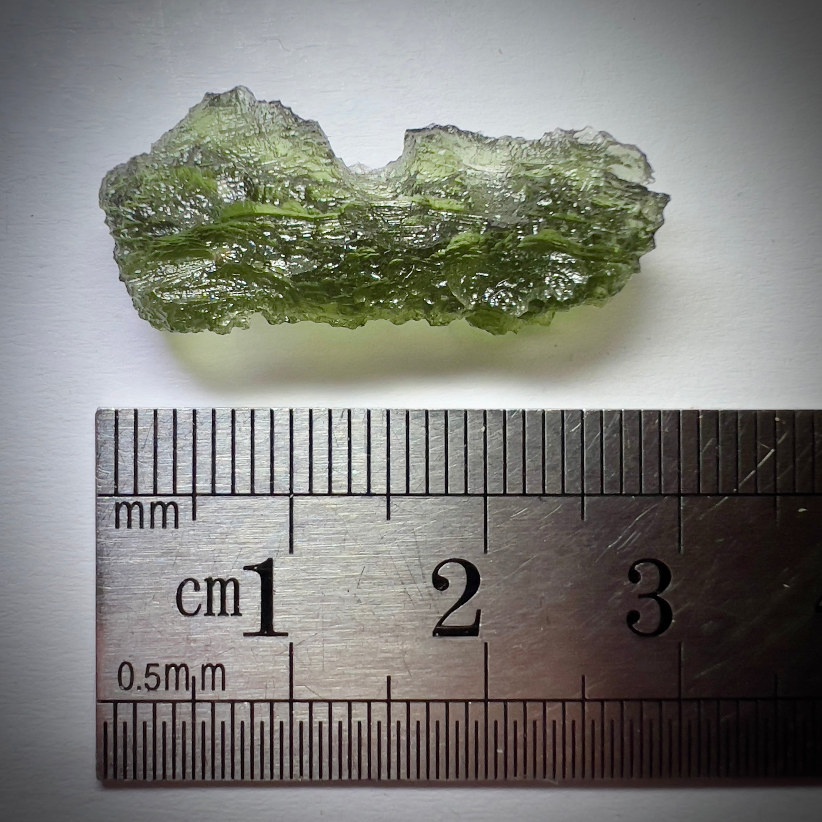 Moldavite is a rare tektite or meteoric glass, caused by an asteroid impact 15mil. years ago. The intense, 10,000°c+ temperatures of the strike vapourised the asteroid, target rock and sand, flinging the molten substance high into the atmosphere.