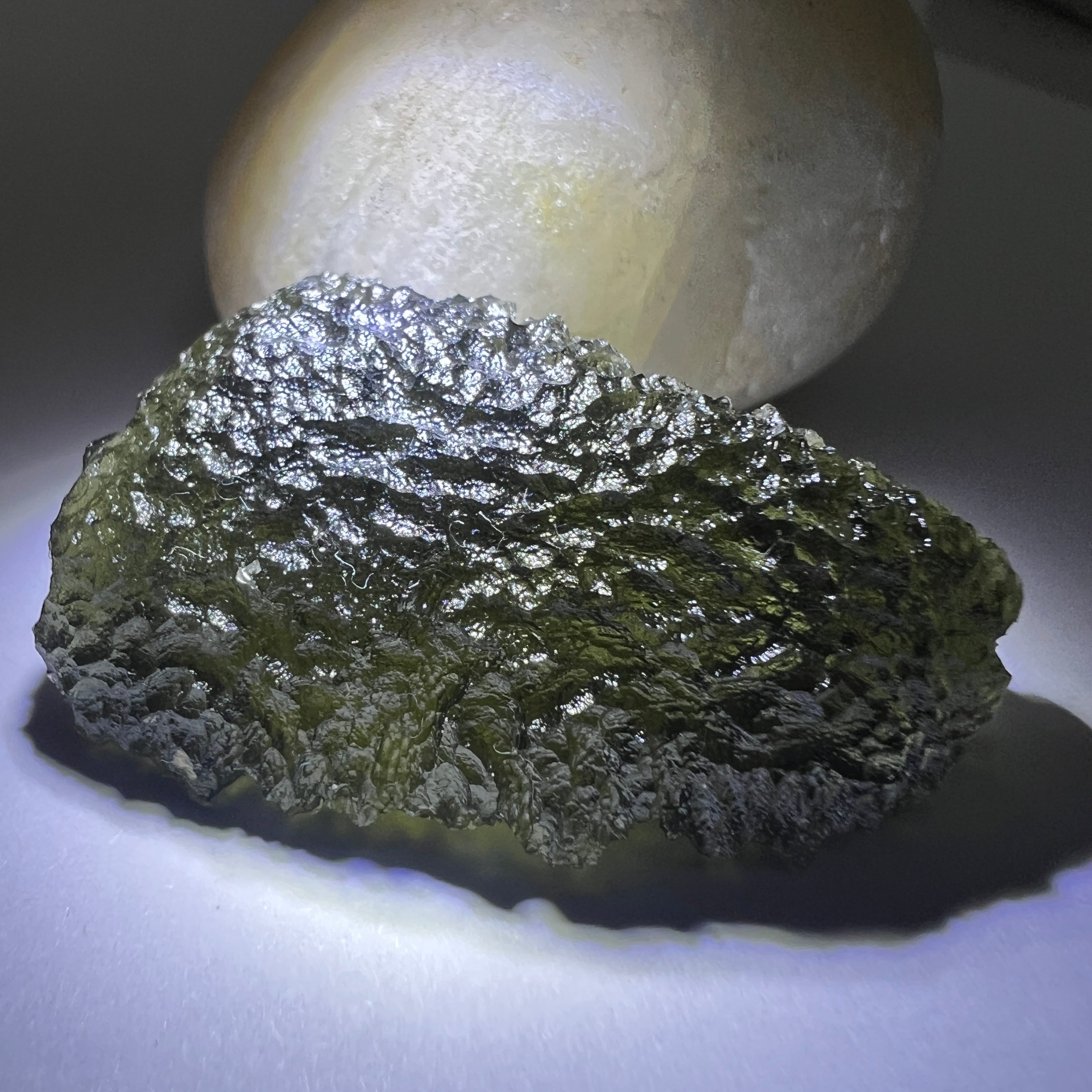 This rare 10.13-gram Moldavite originates from the highly regarded Marouskovo Pole locality in the Czech Republic — known for producing some of the most collectible and energetically potent moldavite specimens.