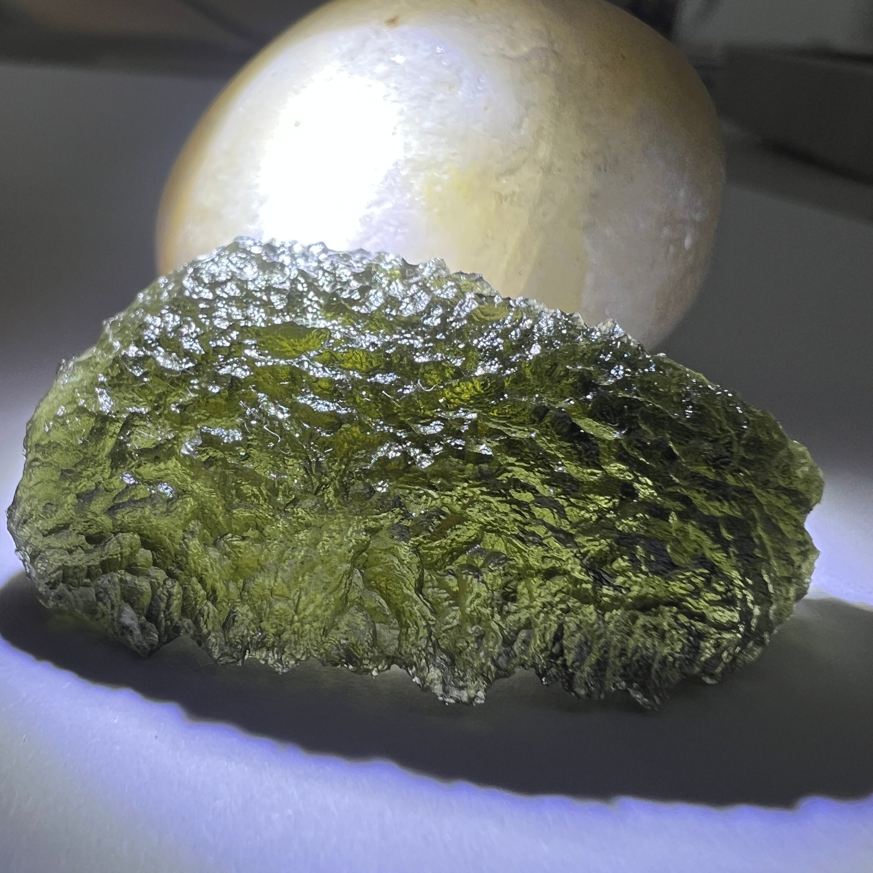 Authentic Moldavite has a distinctive surface texture, natural pits, and a translucent green color that varies in intensity. It is also lighter than glass imitations. To ensure authenticity, purchase Moldavite from reputable sources, and consider requesting a certificate of authenticity.