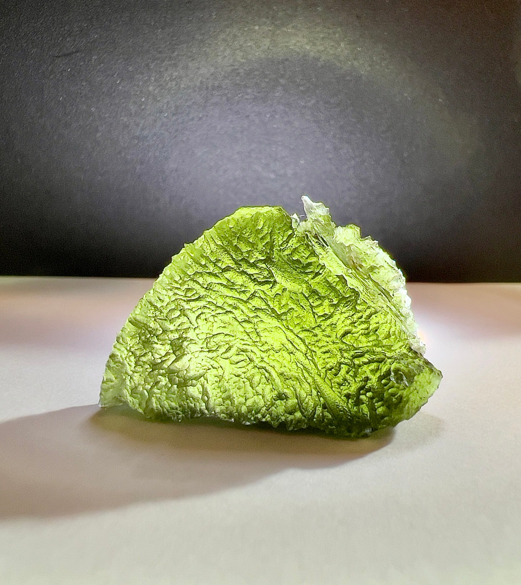 Authentic Moldavite has a distinctive surface texture, natural pits, and a translucent green color that varies in intensity. It is also lighter than glass imitations. To ensure authenticity, purchase Moldavite from reputable sources, and consider requesting a certificate of authenticity.