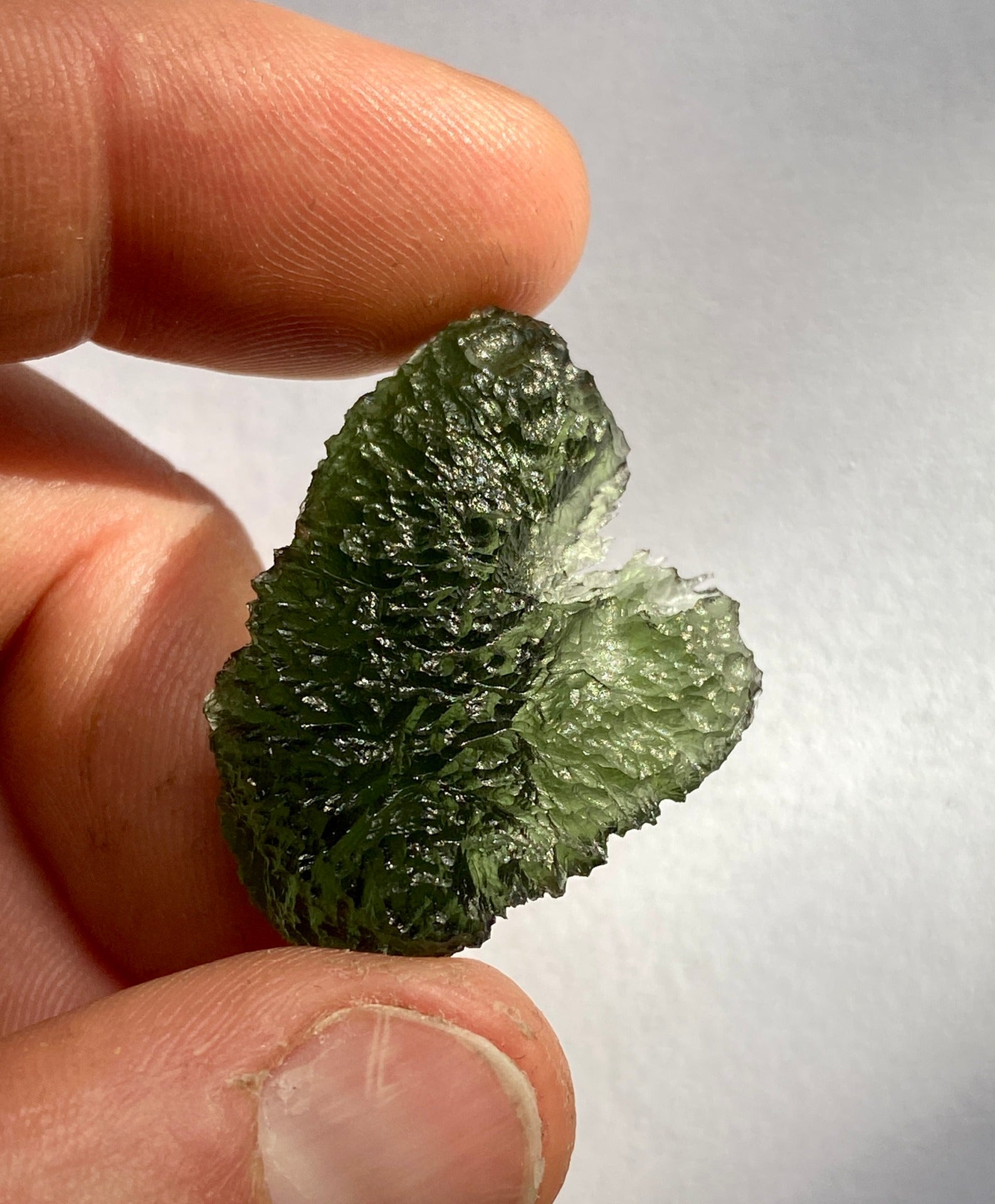 Authentic Moldavite has a distinctive surface texture, natural pits, and a translucent green color that varies in intensity. It is also lighter than glass imitations. To ensure authenticity, purchase Moldavite from reputable sources, and consider requesting a certificate of authenticity.