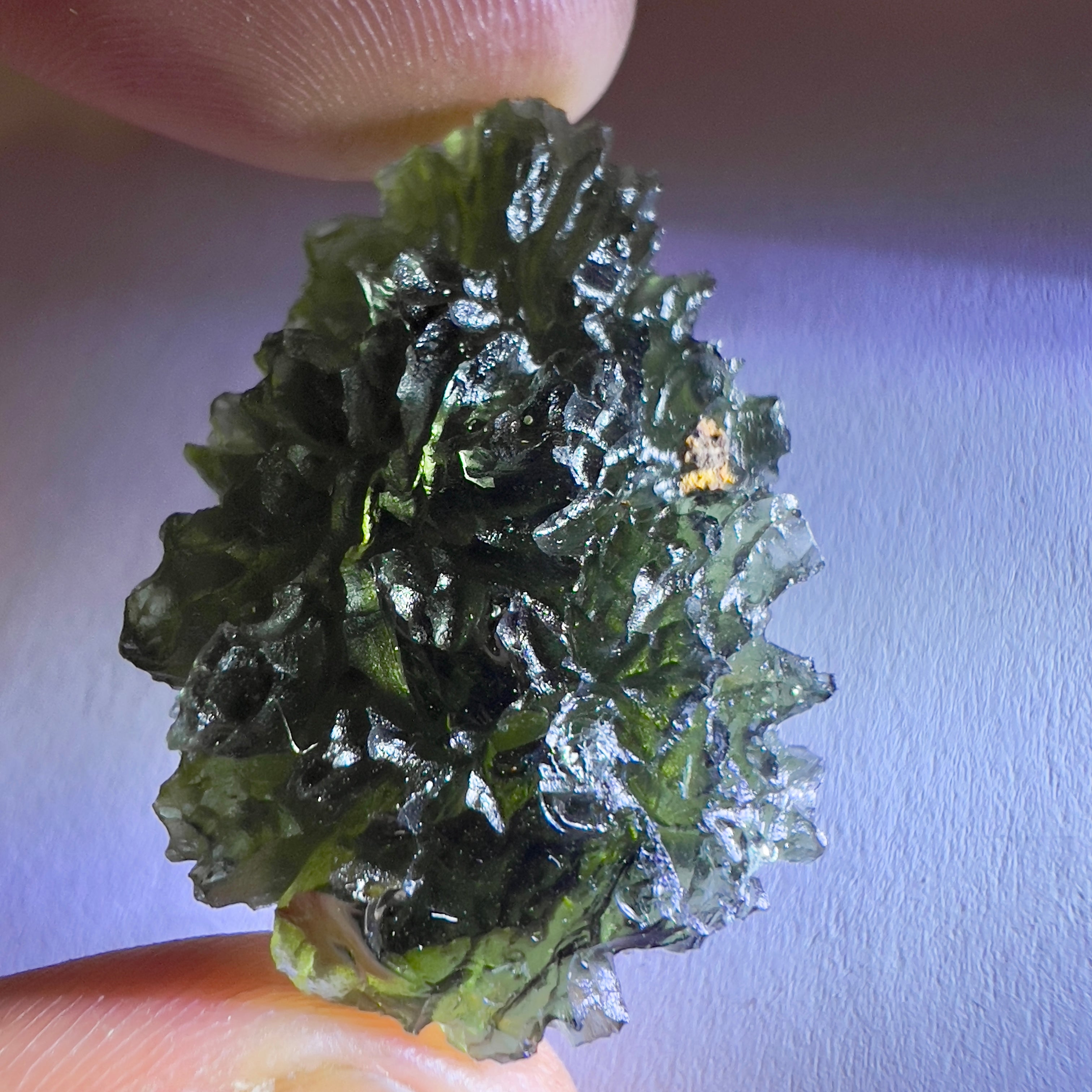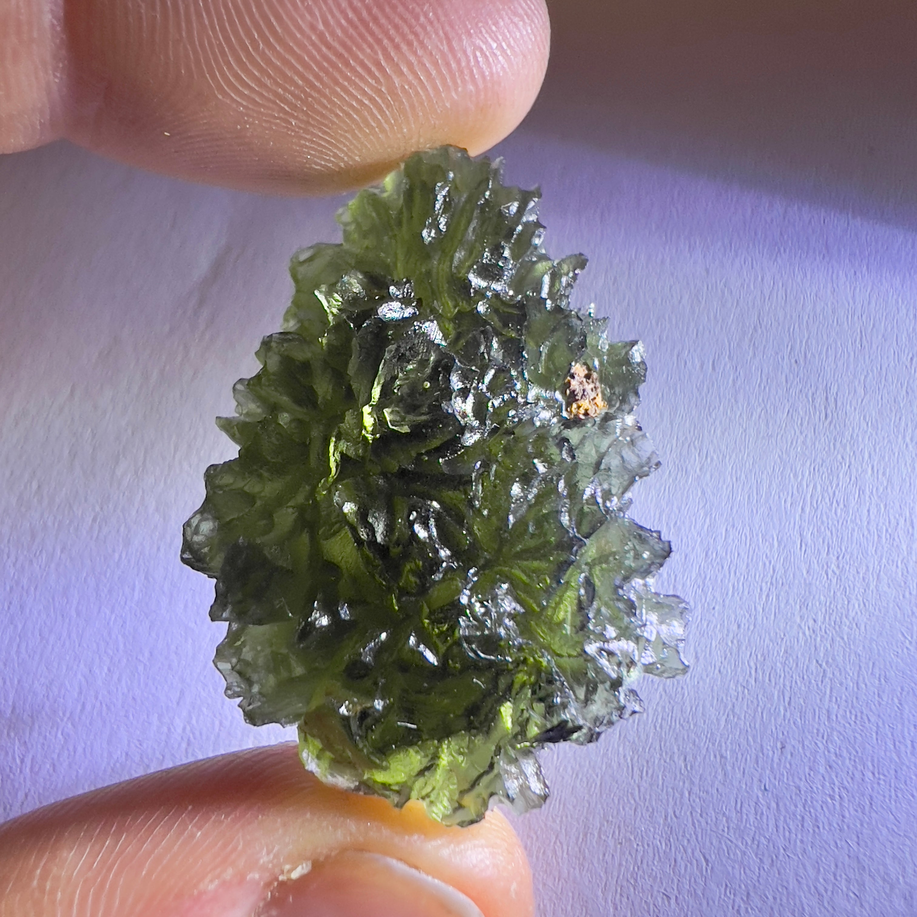 Authentic Moldavite has a distinctive surface texture, natural pits, and a translucent green color that varies in intensity. It is also lighter than glass imitations. To ensure authenticity, purchase Moldavite from reputable sources, and consider requesting a certificate of authenticity.