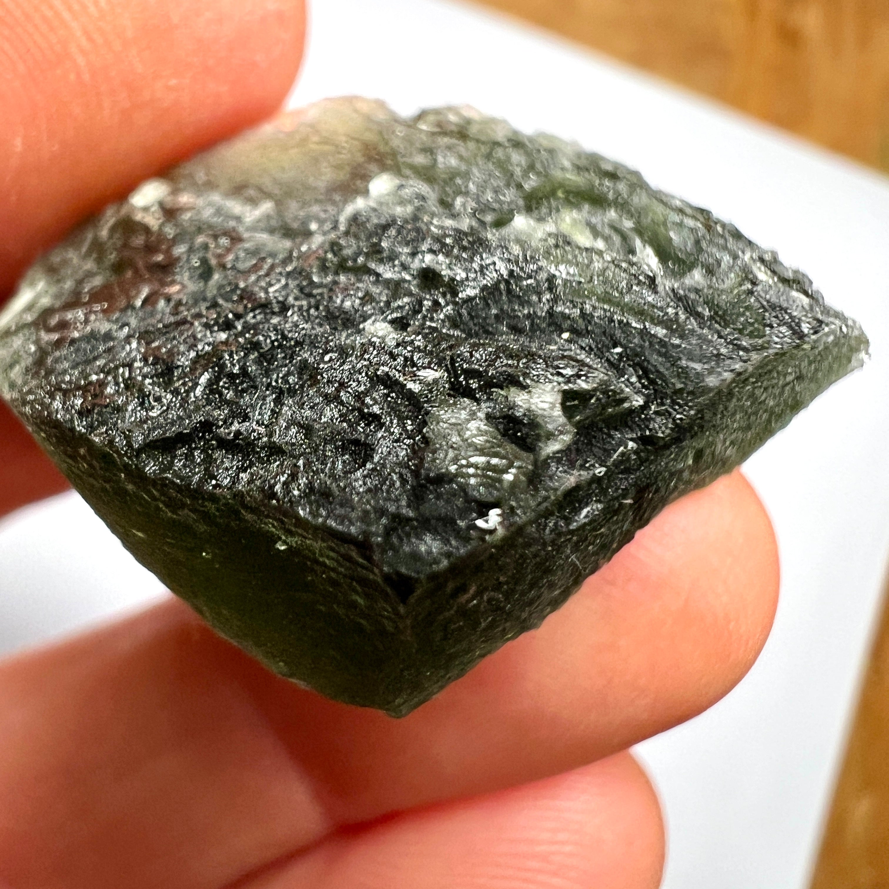 Authentic Moldavite has a distinctive surface texture, natural pits, and a translucent green color that varies in intensity. It is also lighter than glass imitations. To ensure authenticity, purchase Moldavite from reputable sources, and consider requesting a certificate of authenticity.