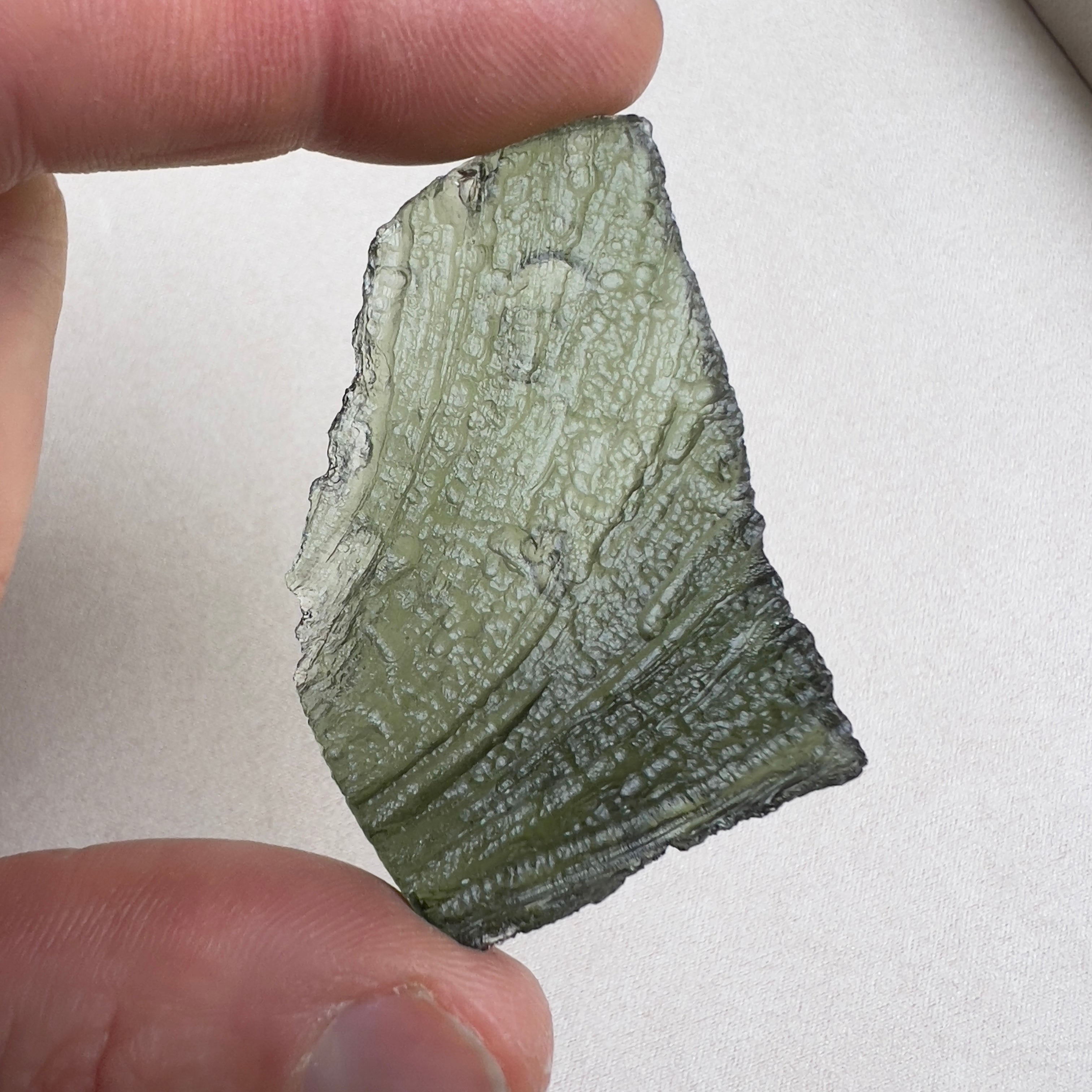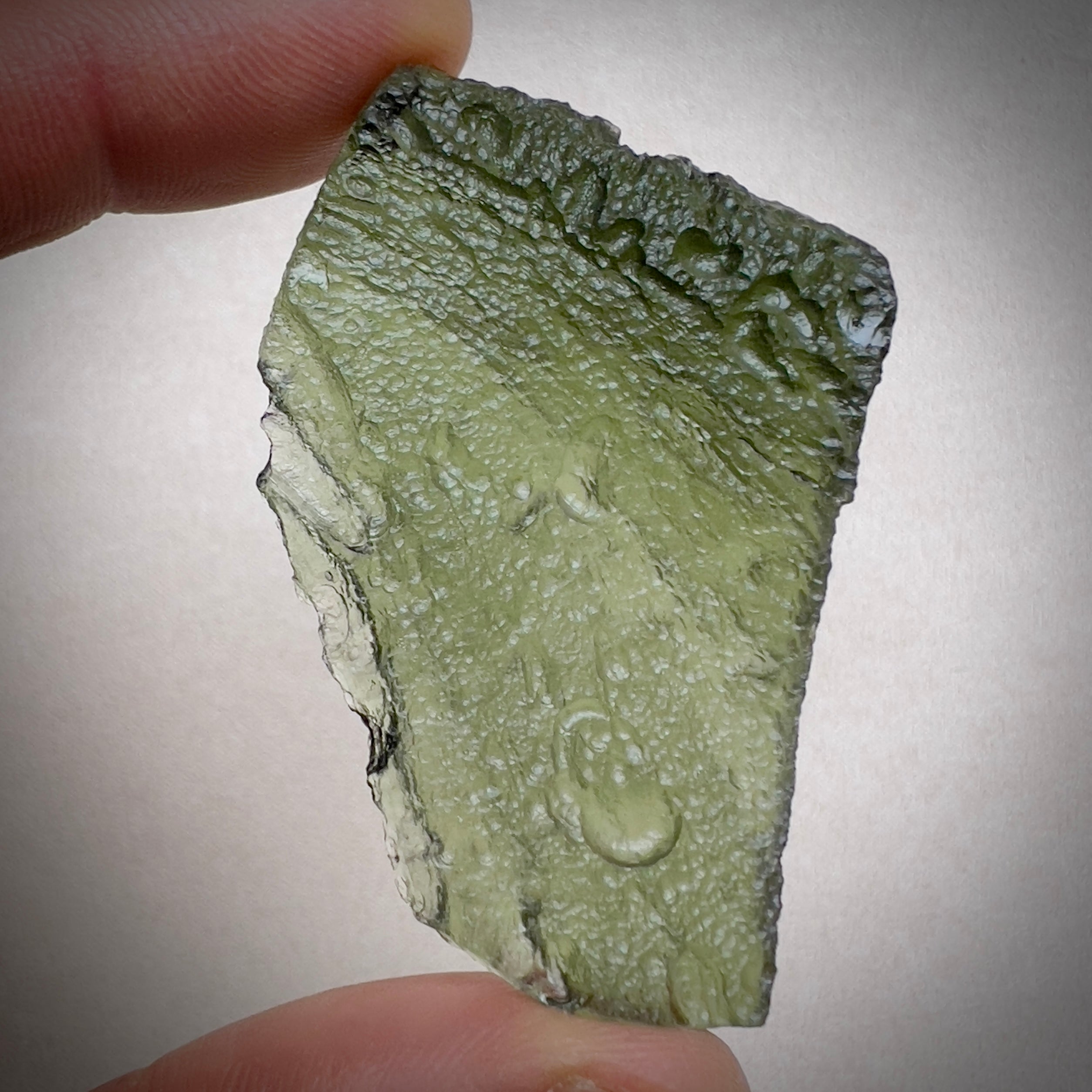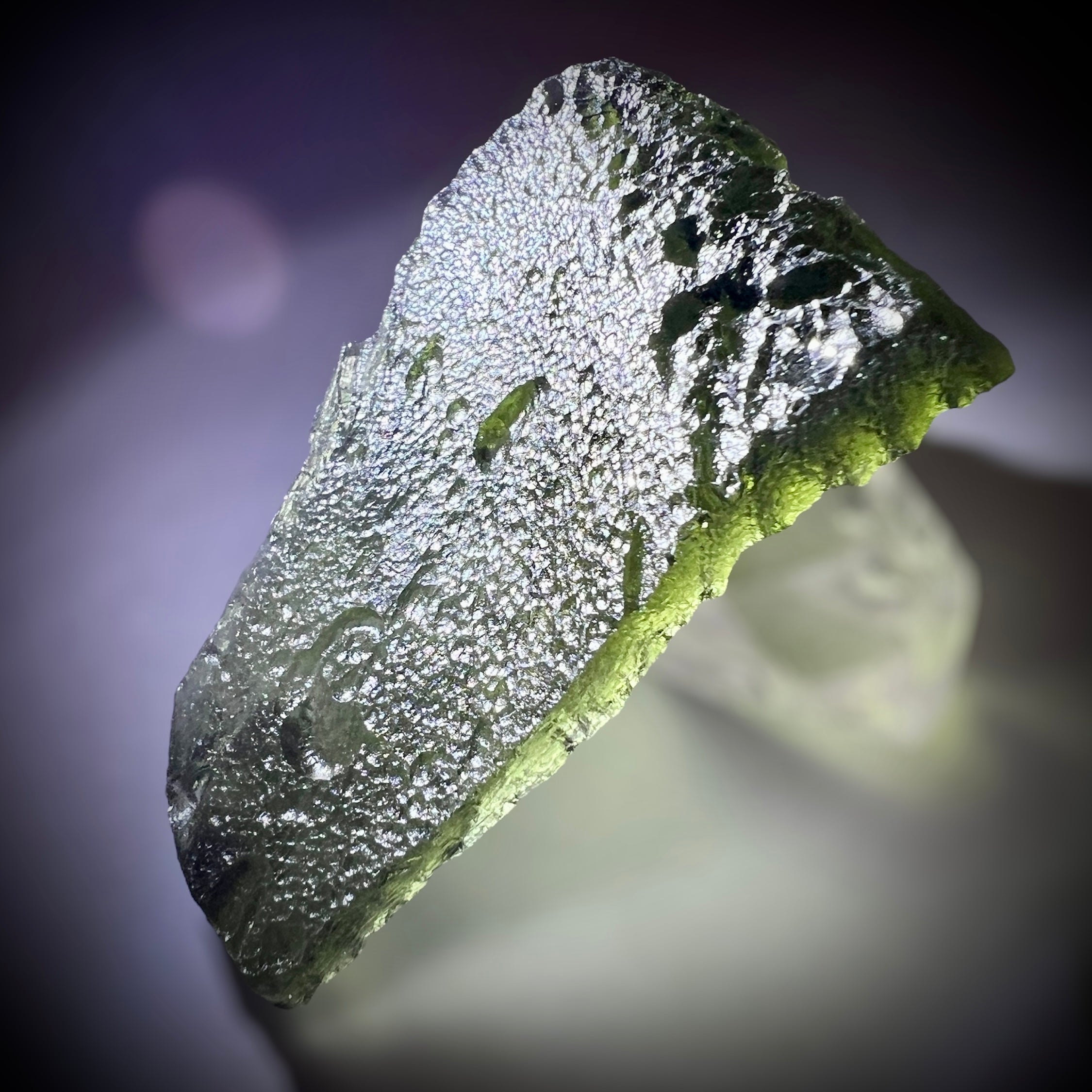 Authentic Moldavite has a distinctive surface texture, natural pits, and a translucent green color that varies in intensity. It is also lighter than glass imitations. To ensure authenticity, purchase Moldavite from reputable sources, and consider requesting a certificate of authenticity.