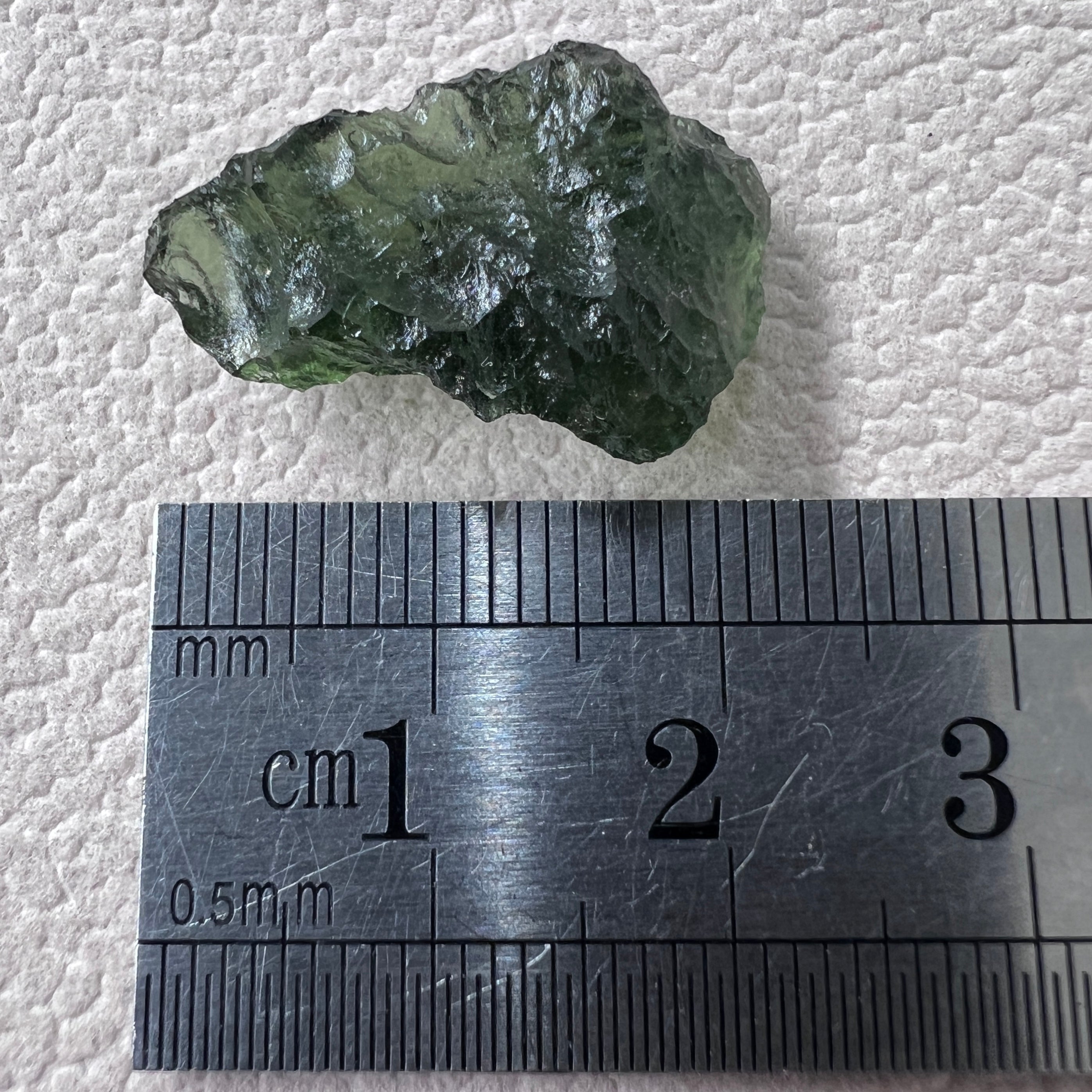 Natural, perfectly preserved Moldavite specimen from Marouskovo Pole weighing 2.05 grams.