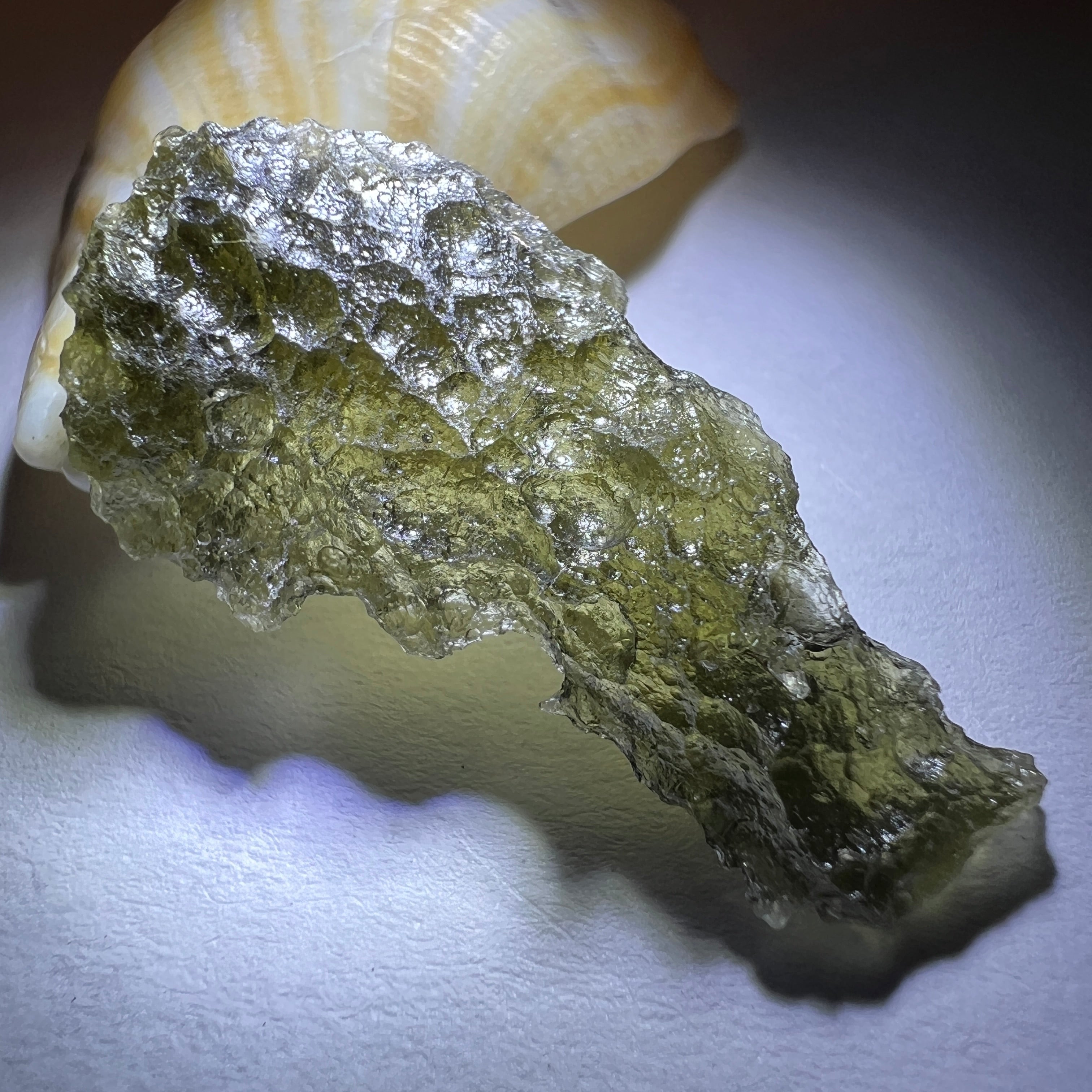 Authentic Moldavite has a distinctive surface texture, natural pits, and a translucent green color that varies in intensity. It is also lighter than glass imitations. To ensure authenticity, purchase Moldavite from reputable sources, and consider requesting a certificate of authenticity.