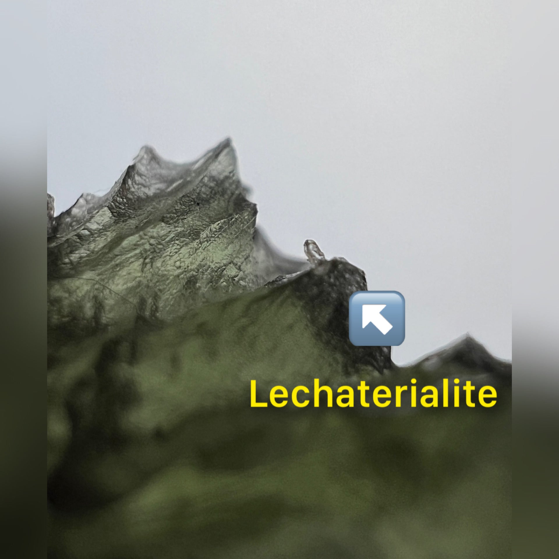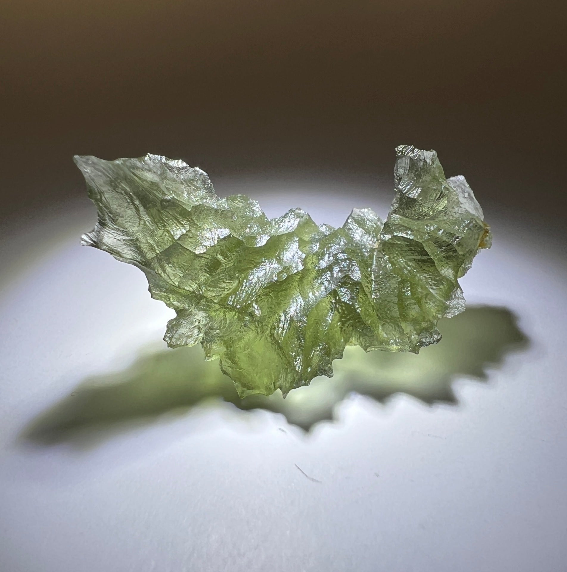 Moldavite is a rare tektite or meteoric glass, caused by an asteroid impact 15mil. years ago. The intense, 10,000°c+ temperatures of the strike vapourised the asteroid, target rock and sand, flinging the molten substance high into the atmosphere.
