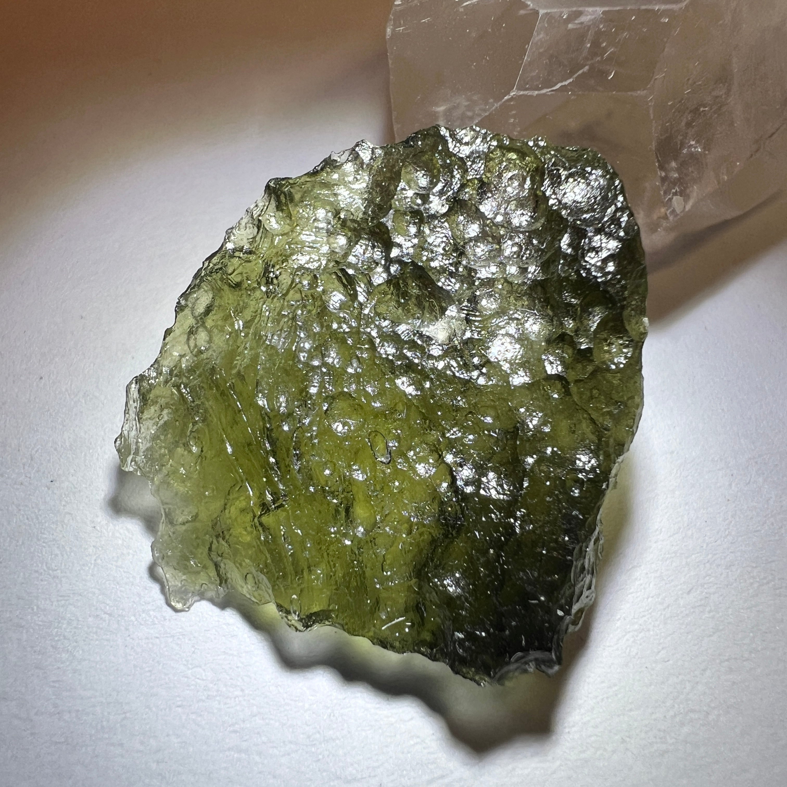 Authentic Moldavite has a distinctive surface texture, natural pits, and a translucent green color that varies in intensity. It is also lighter than glass imitations. To ensure authenticity, purchase Moldavite from reputable sources, and consider requesting a certificate of authenticity.