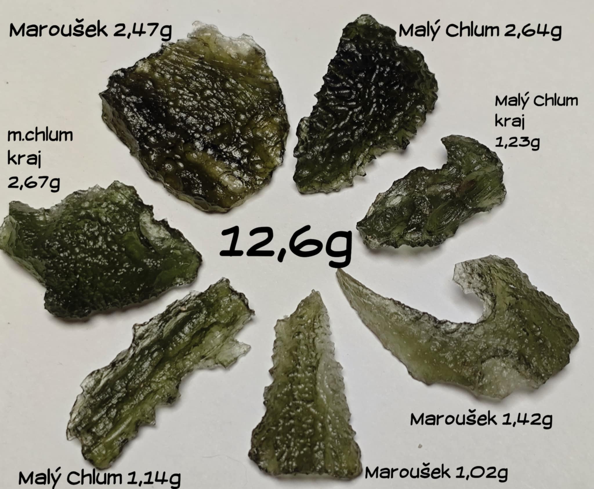 Moldavite specimen weighing 2.47 grams. Locality: Marousek (CZ).