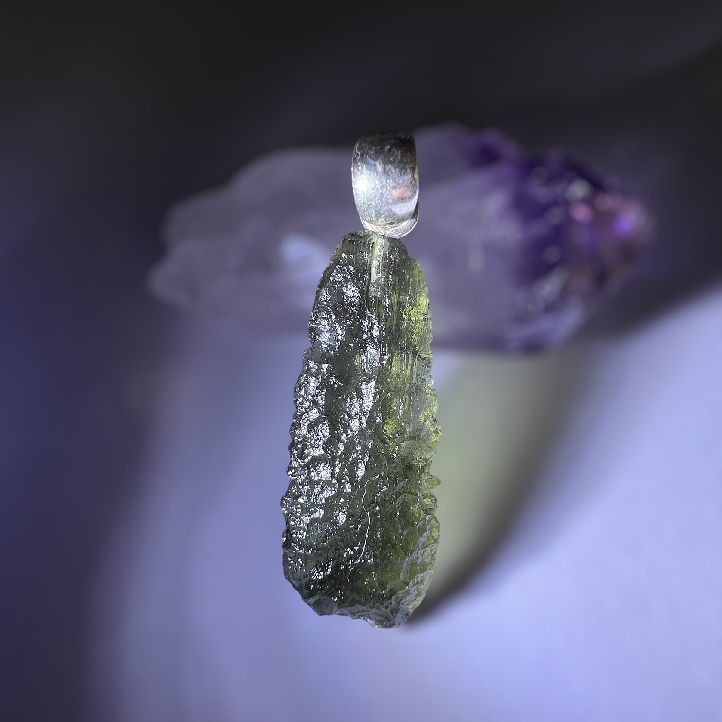 Moldavite pendant featuring a genuine Czech Moldavite weighing 2.63 grams.