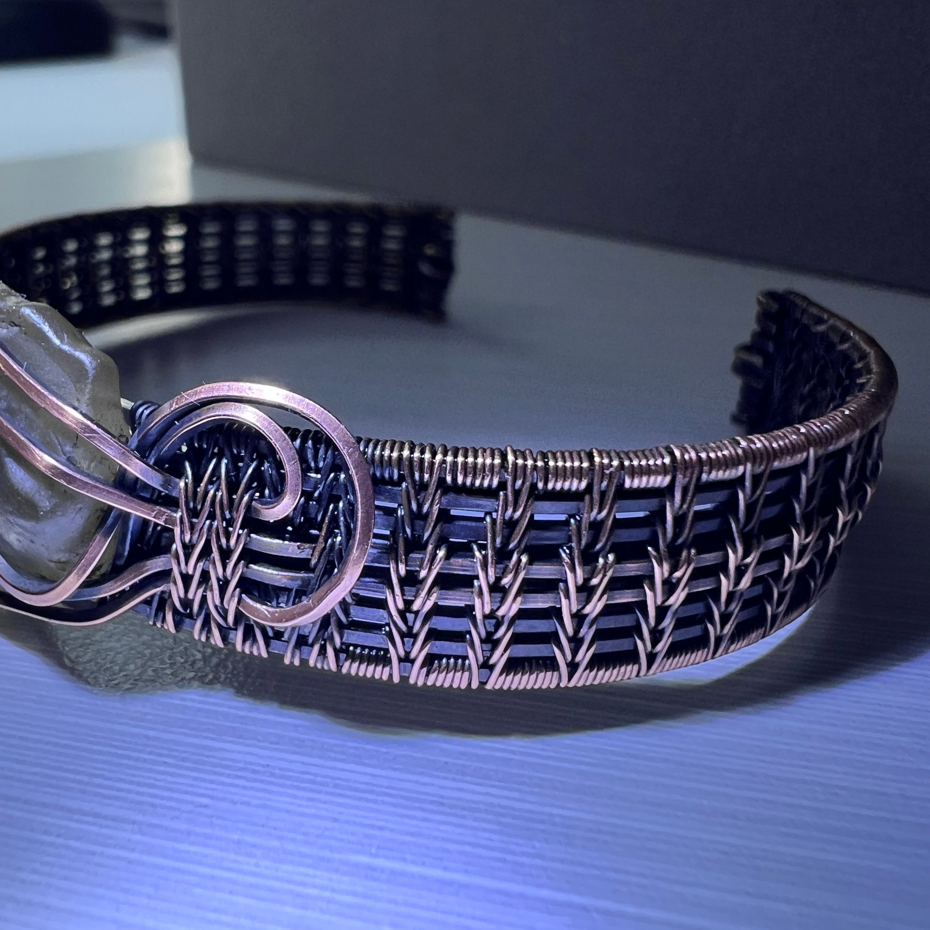 Moldavite is often associated with transformation, awakening, and higher consciousness, while copper has long been valued for its grounding and energy-conducting properties. Together, they symbolize the balance between cosmic change and earthly stability.