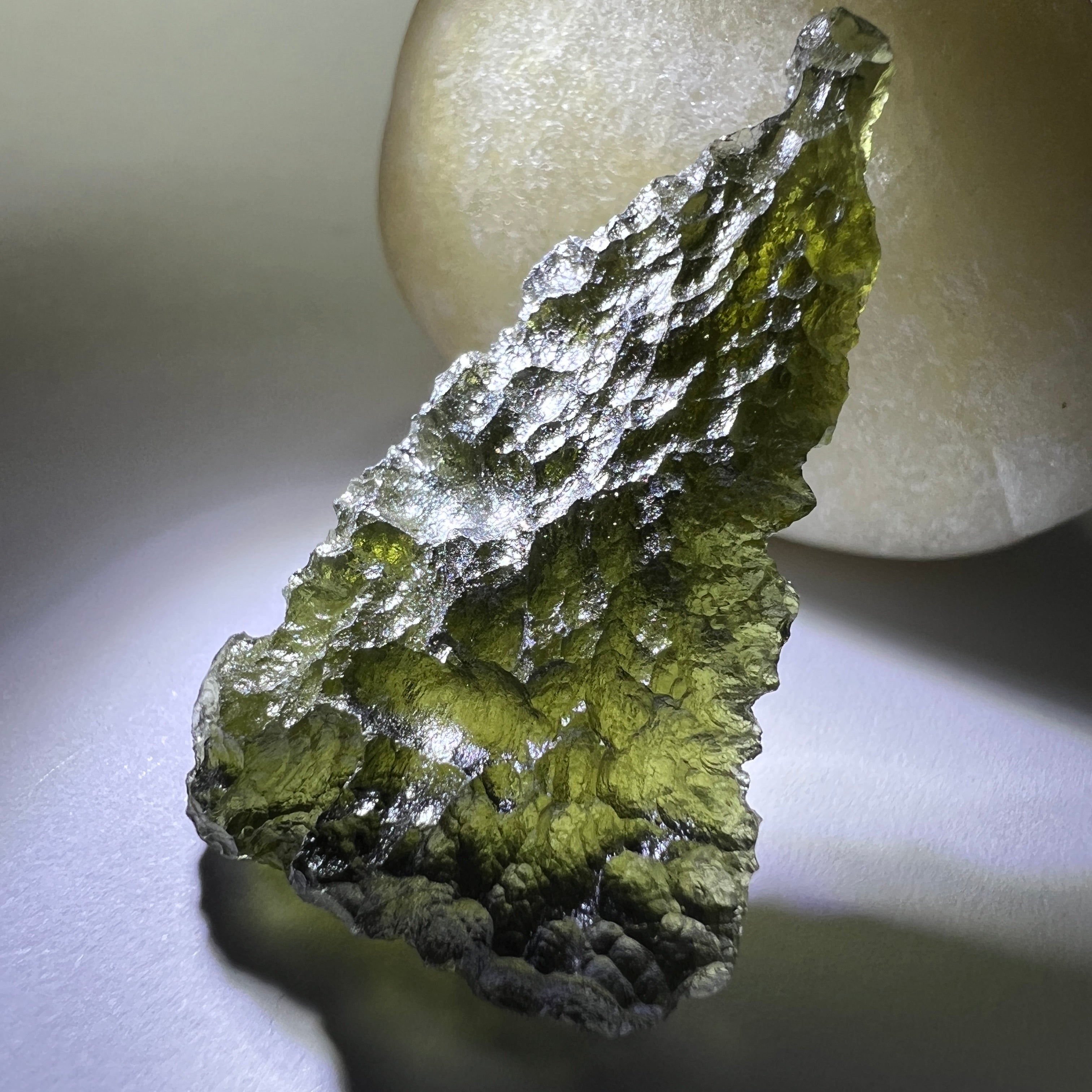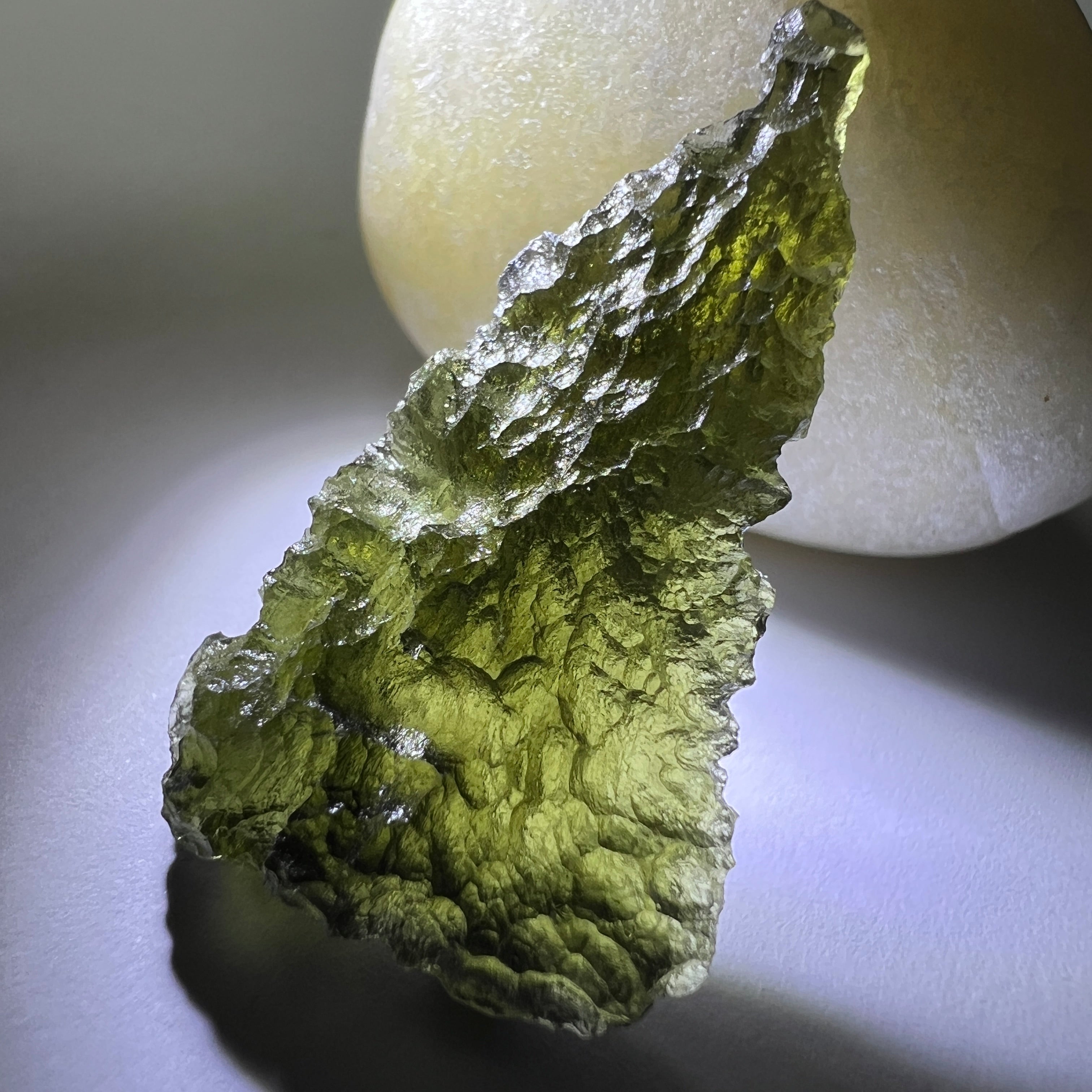 Authentic Moldavite has a distinctive surface texture, natural pits, and a translucent green color that varies in intensity. It is also lighter than glass imitations. To ensure authenticity, purchase Moldavite from reputable sources, and consider requesting a certificate of authenticity.