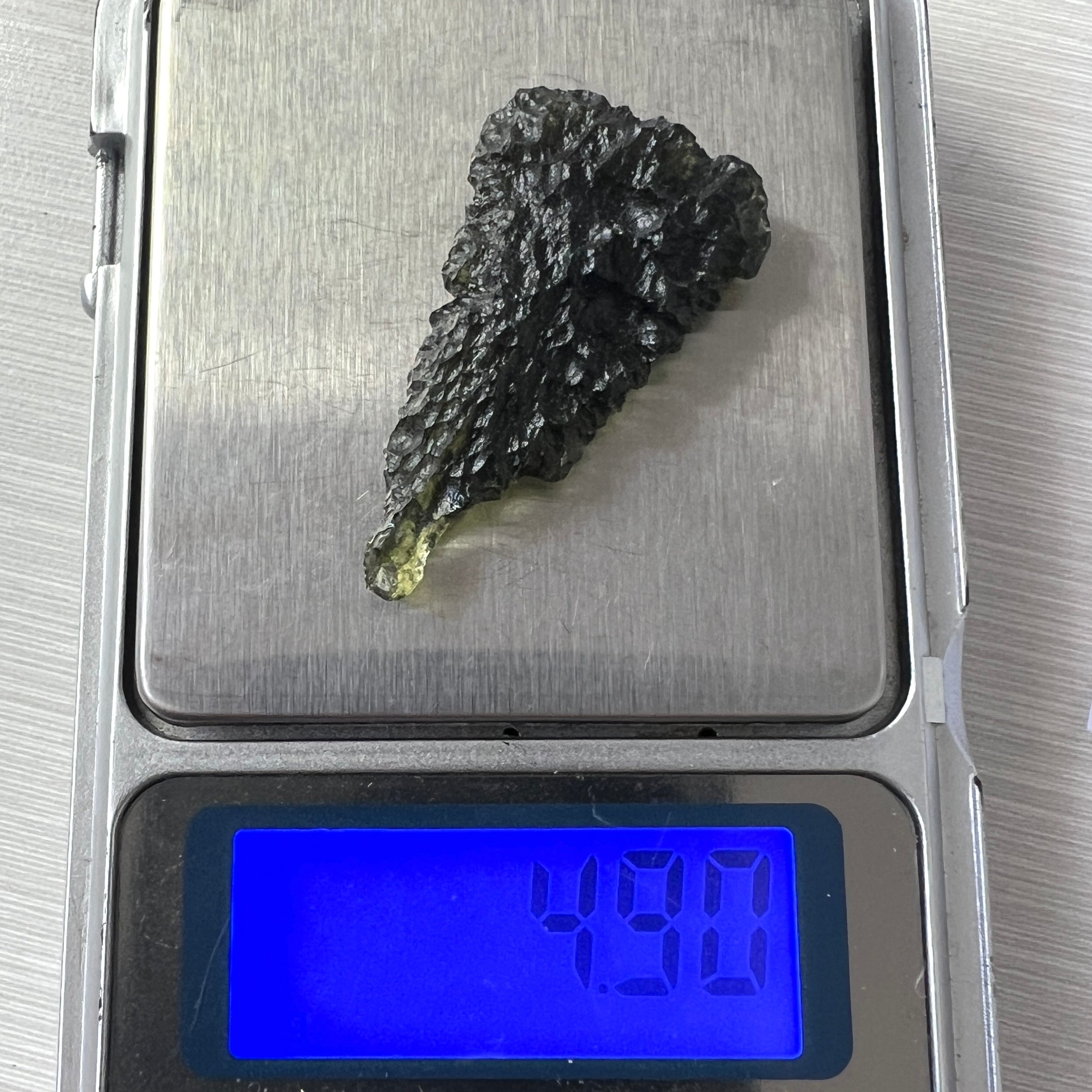 Weighing 4.90 grams, this piece stands out as an exceptional addition for any serious Moldavite collector.