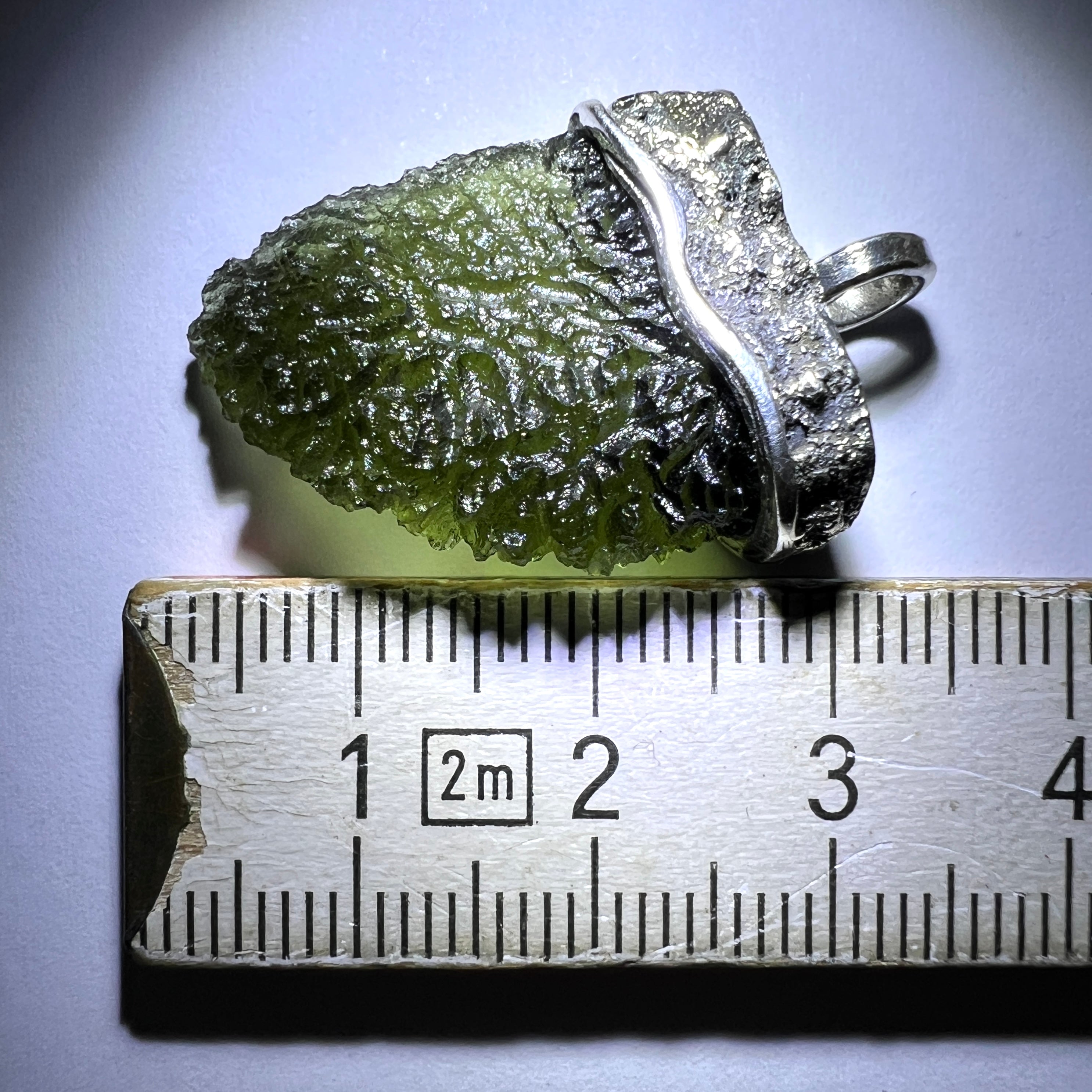 Each Moldavite is a one-of-a-kind creation of nature, formed over 15 million years ago by the impact of a meteorite in what is now Central Europe. This pendant carries that cosmic legacy — a rare fusion of earthly craftsmanship and celestial energy.