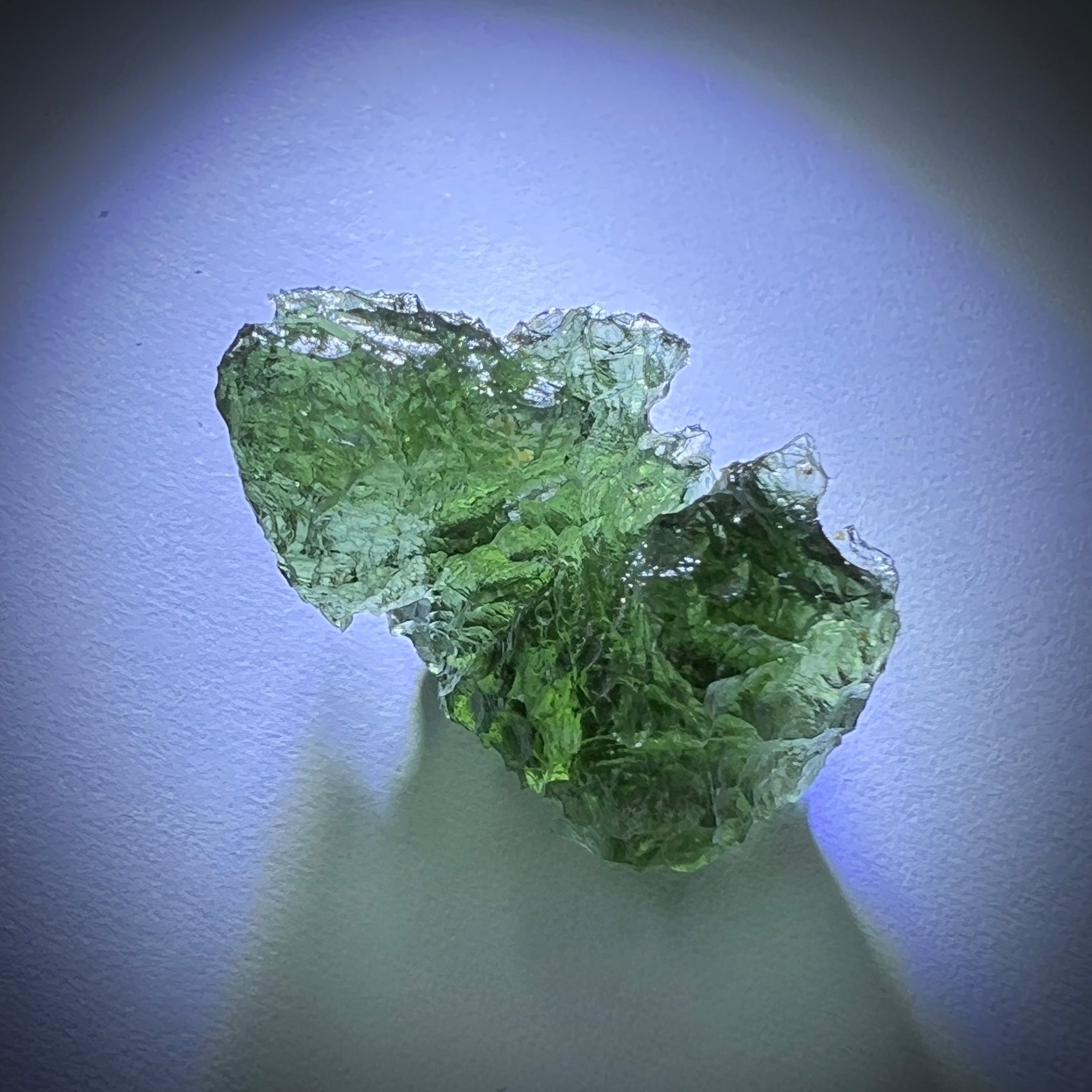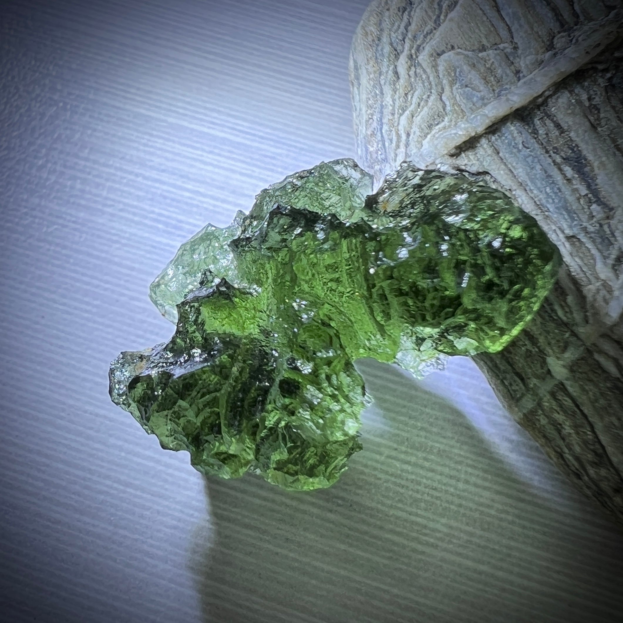 Beautifully sculpted natural Moldavite specimen from Maly Chlum, weighing 3.2 grams.