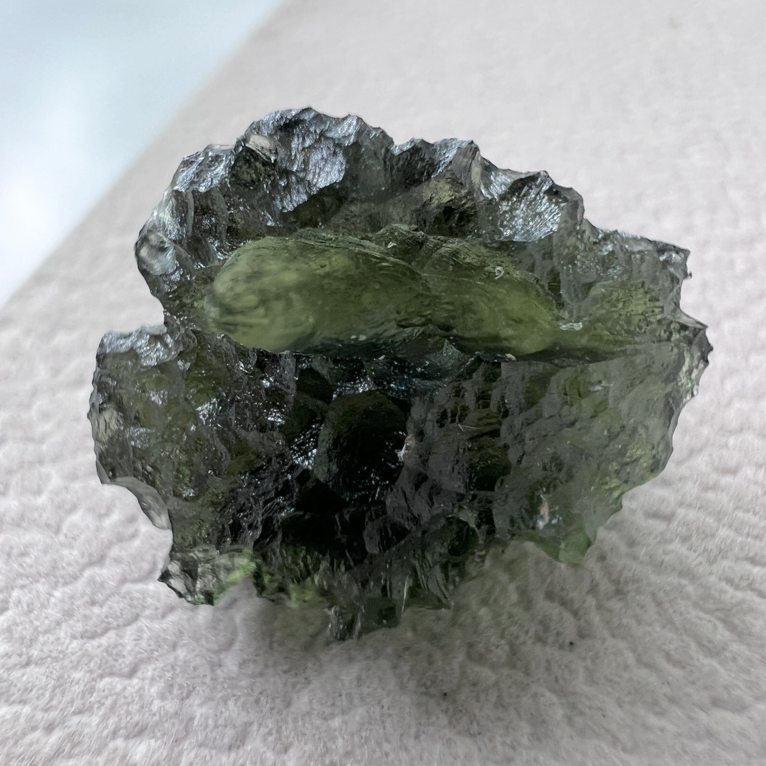 Authentic Moldavite has a distinctive surface texture, natural pits, and a translucent green color that varies in intensity. It is also lighter than glass imitations. To ensure authenticity, purchase Moldavite from reputable sources, and consider requesting a certificate of authenticity.