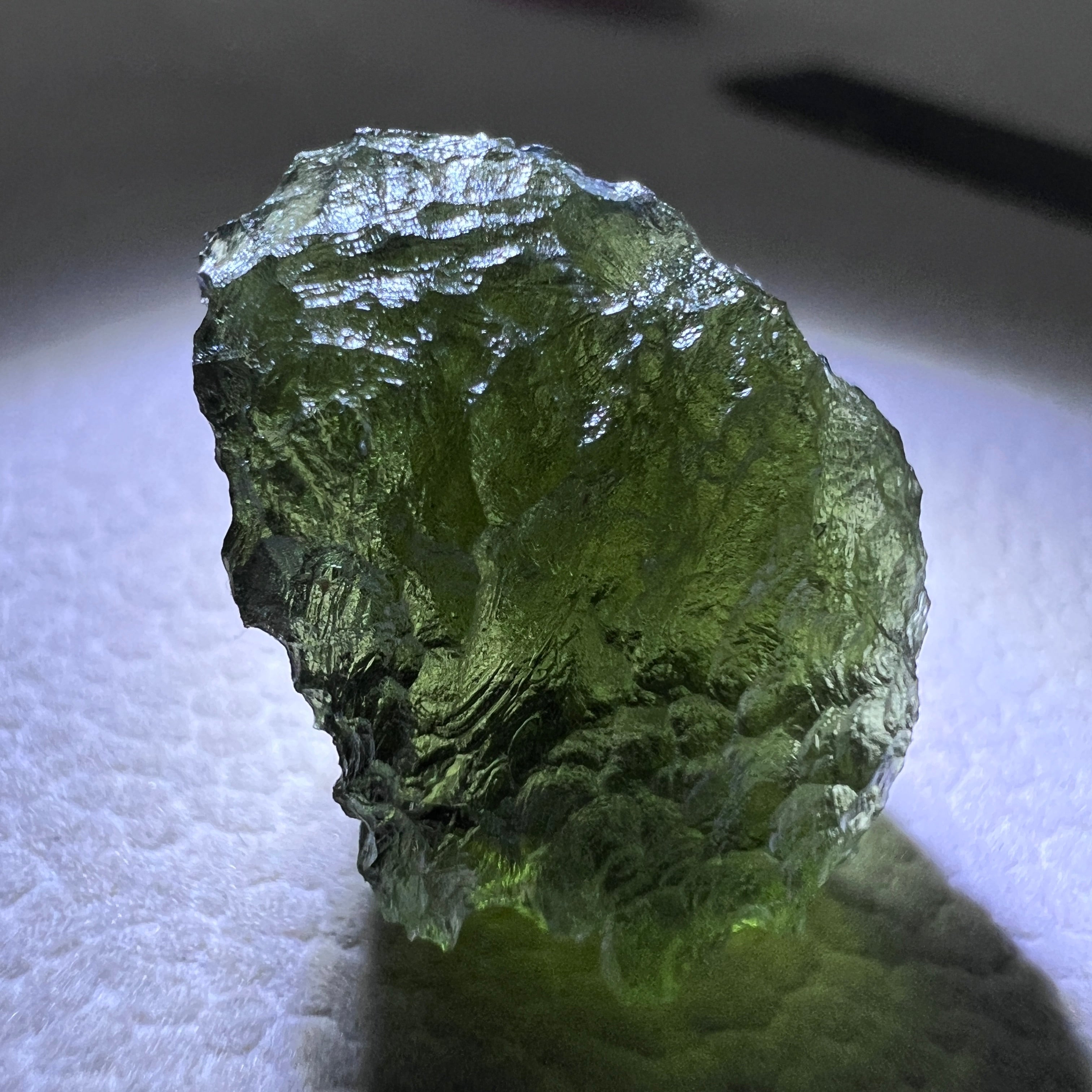 Natural Moldavite specimen from Marouskovo Pole weighing 3.36 grams. Very nice texture all the way around, mint condition with no damage.