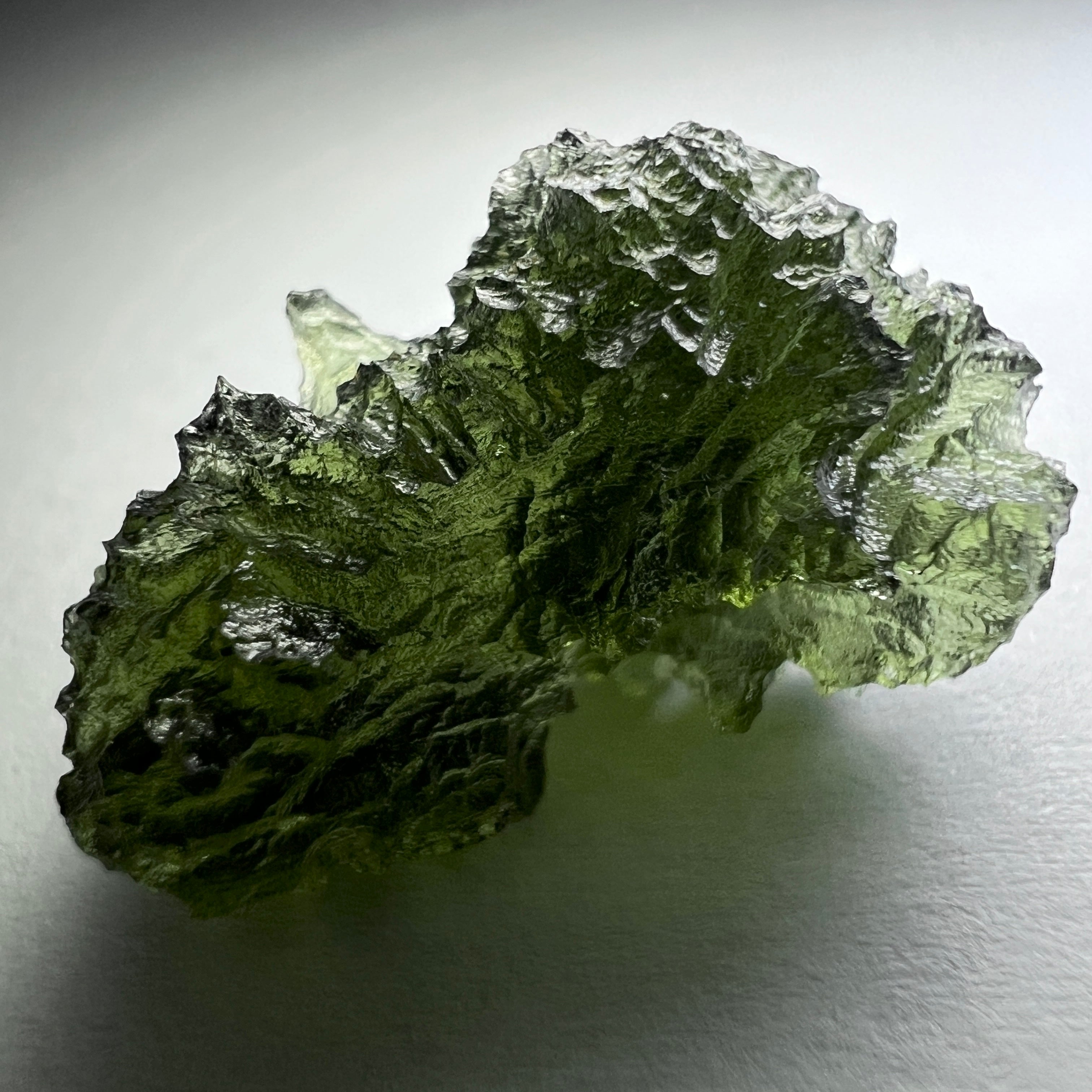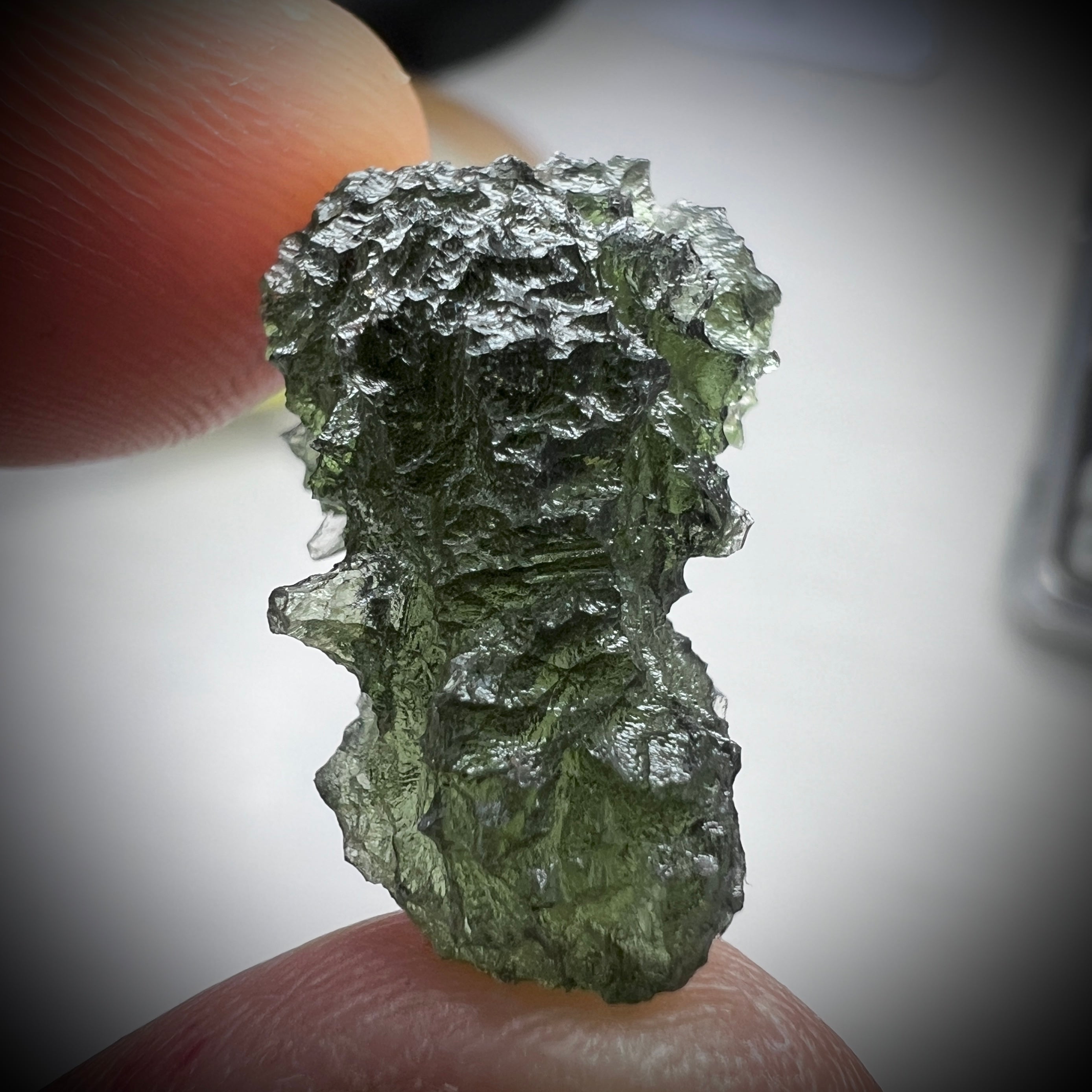 Immaculate, beautifully textured Moldavite specimen from the renowned deposits of Maly Chlum. Flawless undamaged specimen weighing 3.44 grams.
