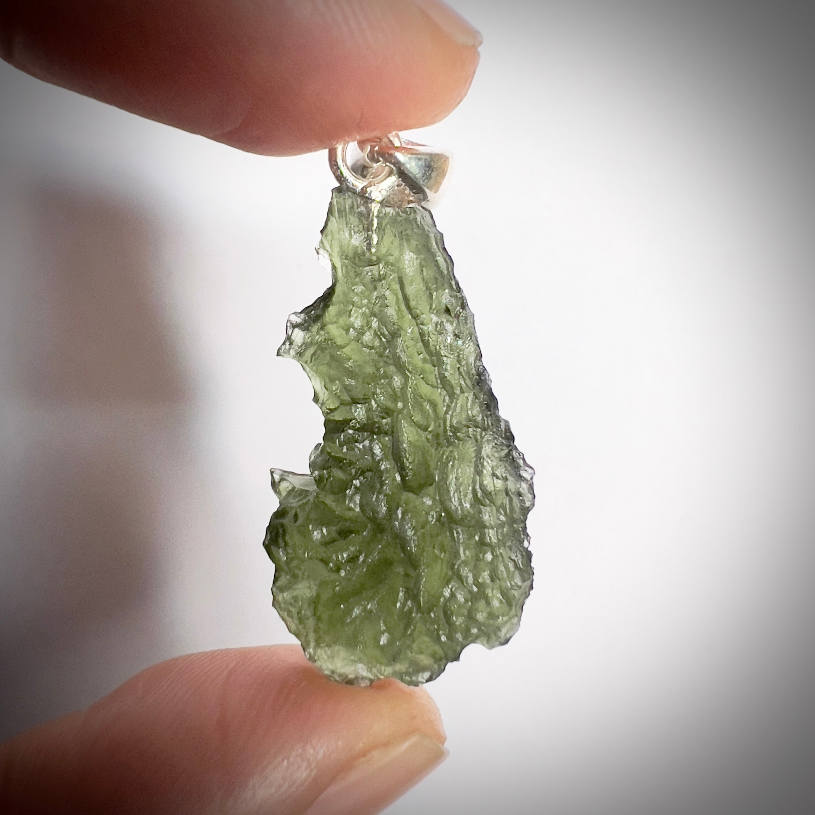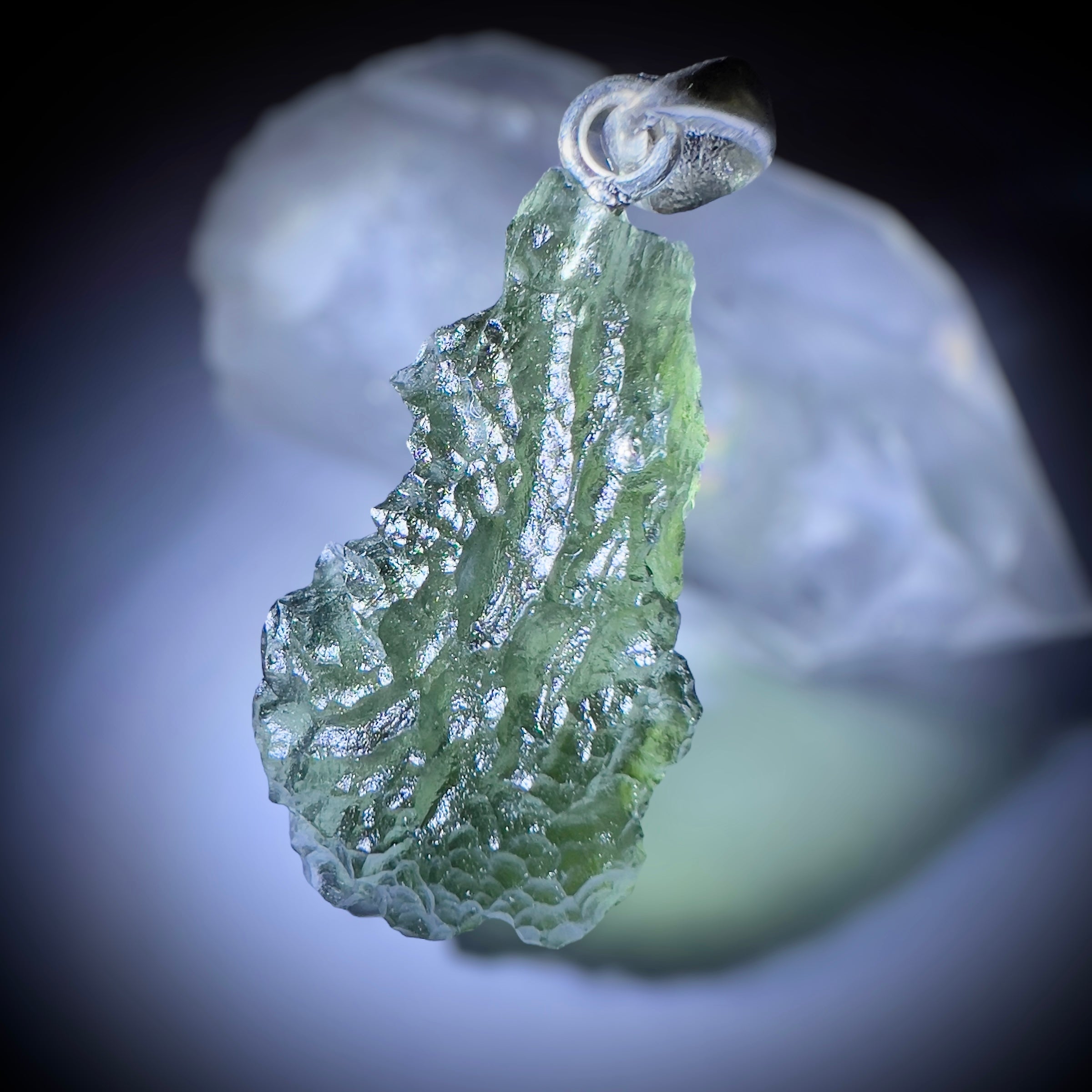 Moldavite pendant featuring a genuine Czech Moldavite weighing 3.86 grams.