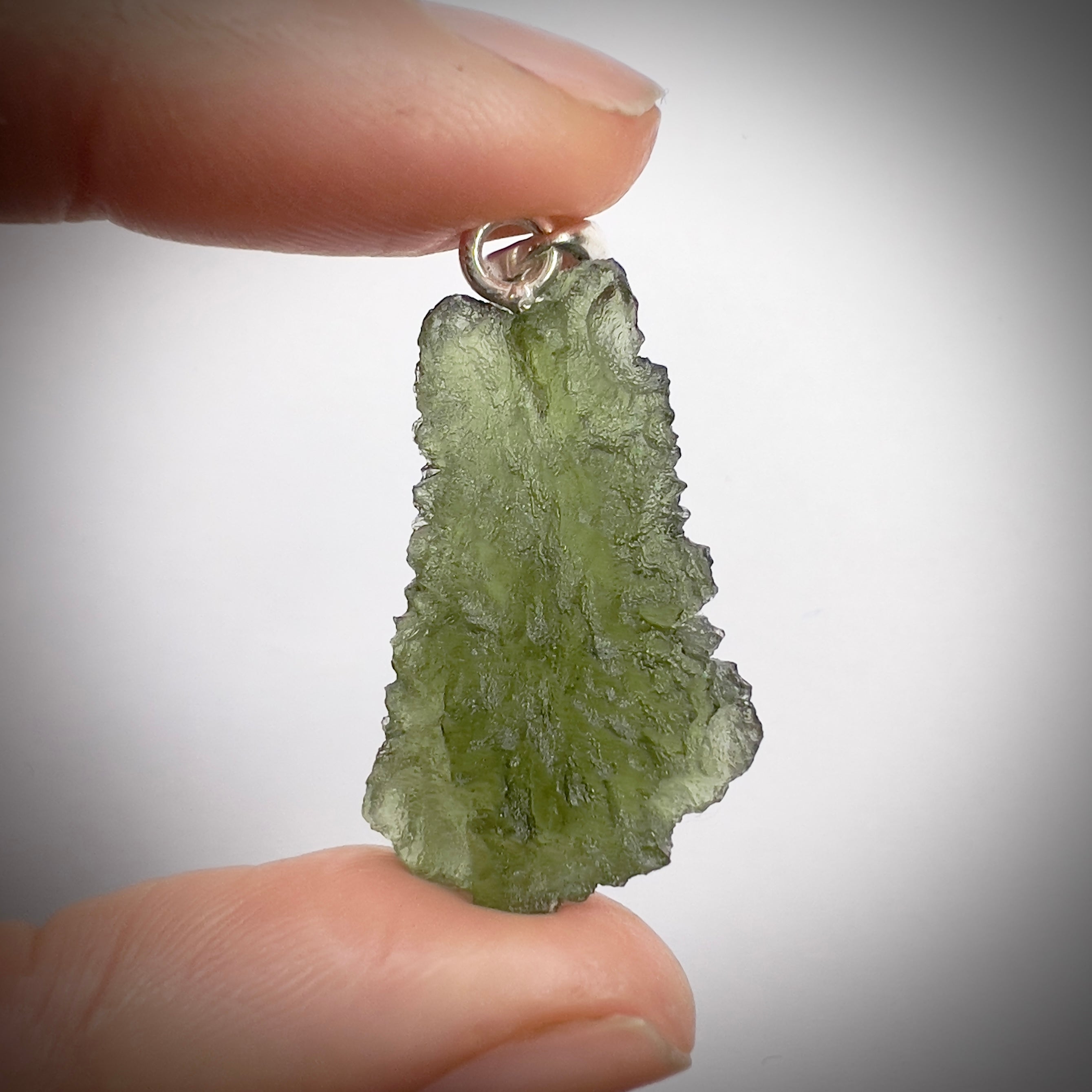 Moldavite pendant featuring a genuine Czech Moldavite weighing 4.28 grams.