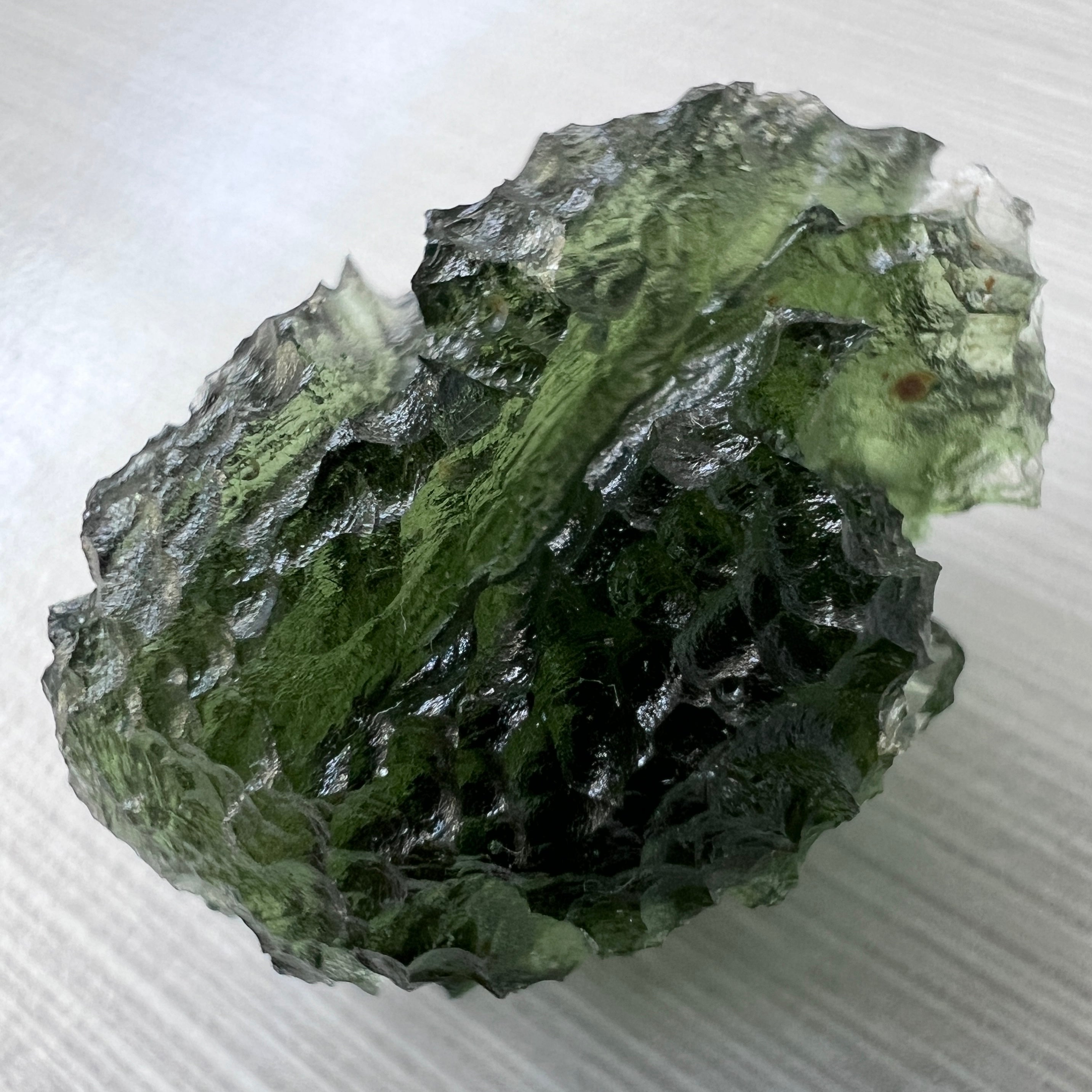 Authentic Moldavite has a distinctive surface texture, natural pits, and a translucent green color that varies in intensity. It is also lighter than glass imitations. To ensure authenticity, purchase Moldavite from reputable sources, and consider requesting a certificate of authenticity.