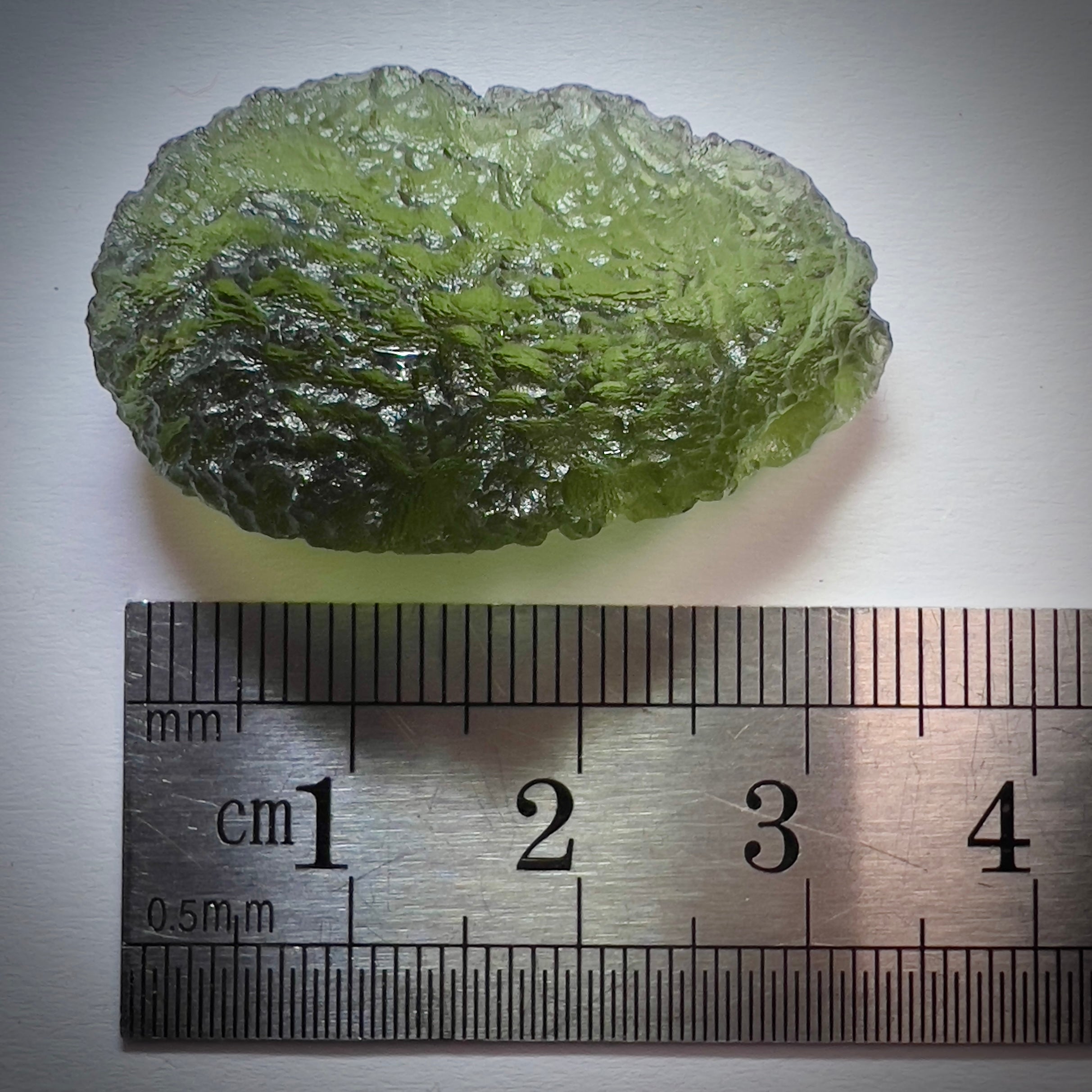 Moldavite is a rare tektite or meteoric glass, caused by an asteroid impact 15mil. years ago. The intense, 10,000°c+ temperatures of the strike vapourised the asteroid, target rock and sand, flinging the molten substance high into the atmosphere.