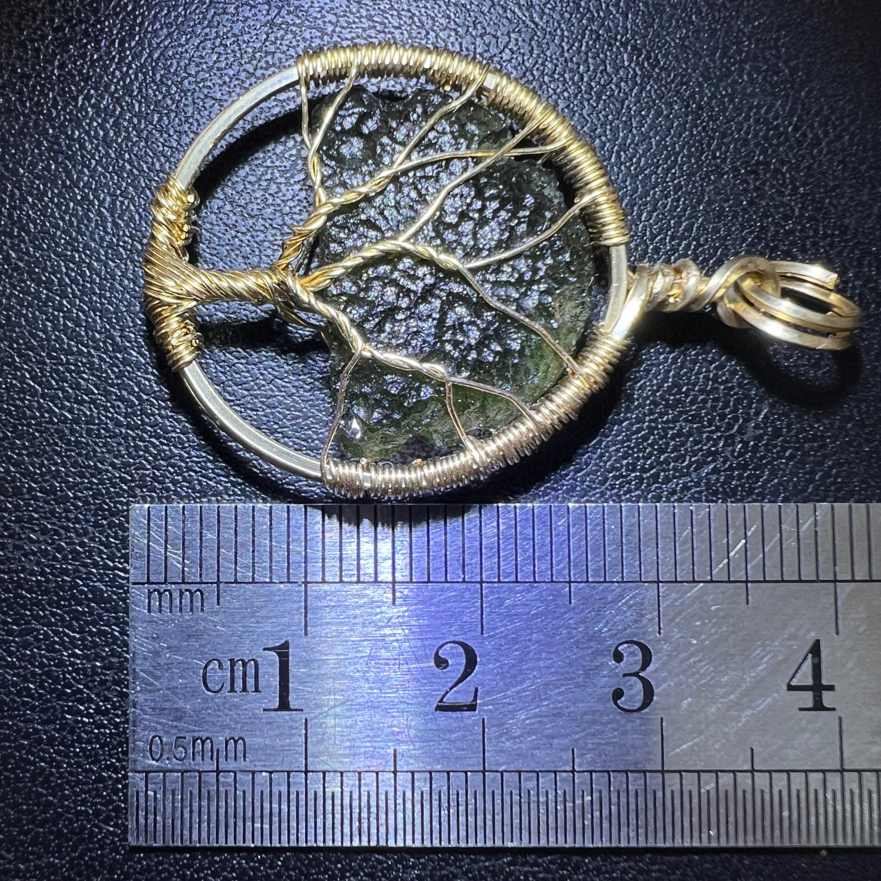 Beautiful 2.4g Moldavite Tree of Life Pendant in 14k Gold Filled – Locality: Chlum