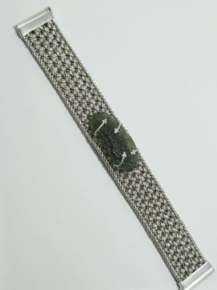 The Moldavite featured in this bracelet originates from Chlum in the Czech Republic, one of the classic Moldavite localities known for producing beautifully sculpted specimens.