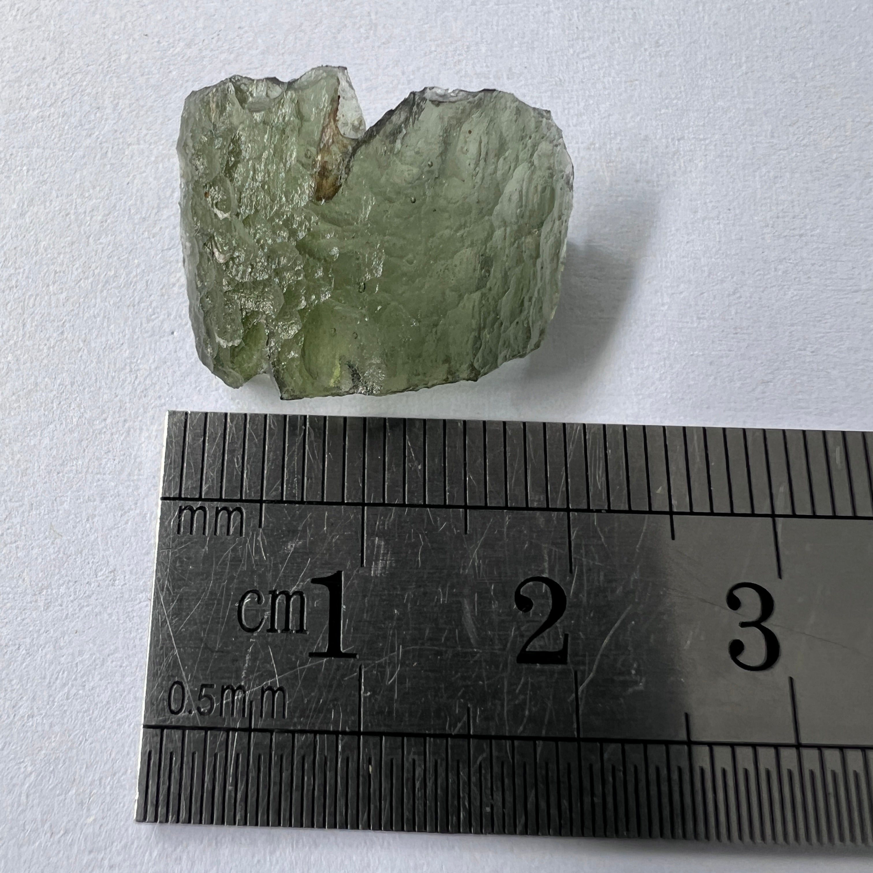 This authentic 1.73-gram Moldavite from the Marouškovo Pole locality displays a naturally sculpted form with excellent surface definition.