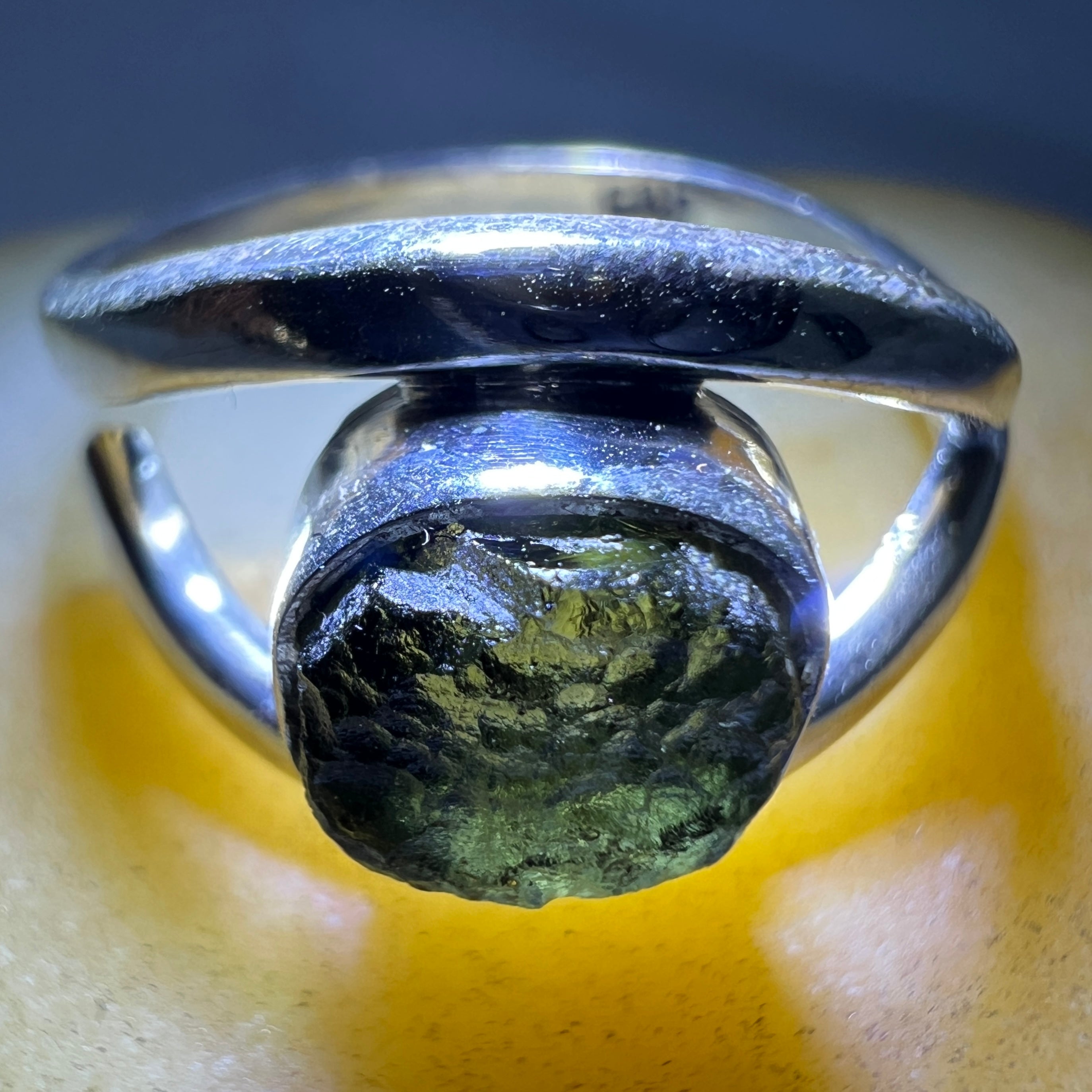 💫 All Seeing Eye Moldavite Silver Ring – Size 8 (R)