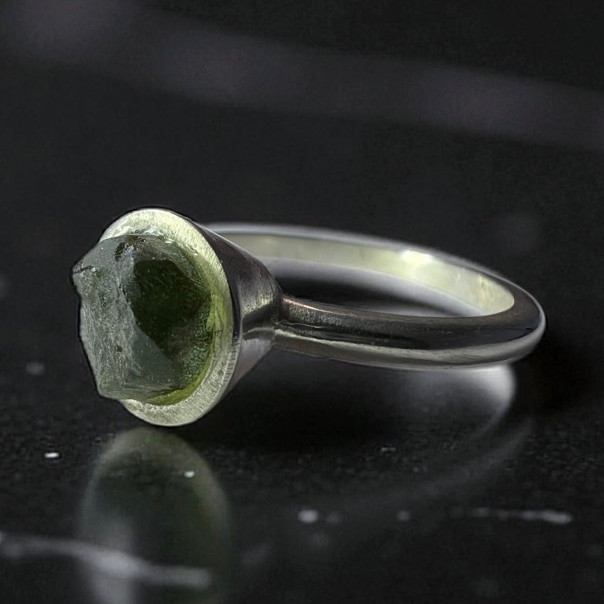 Each ring is individually crafted, carrying its own natural variations and the authentic energy of true Moldavite from the Chlum region of the Czech Republic.