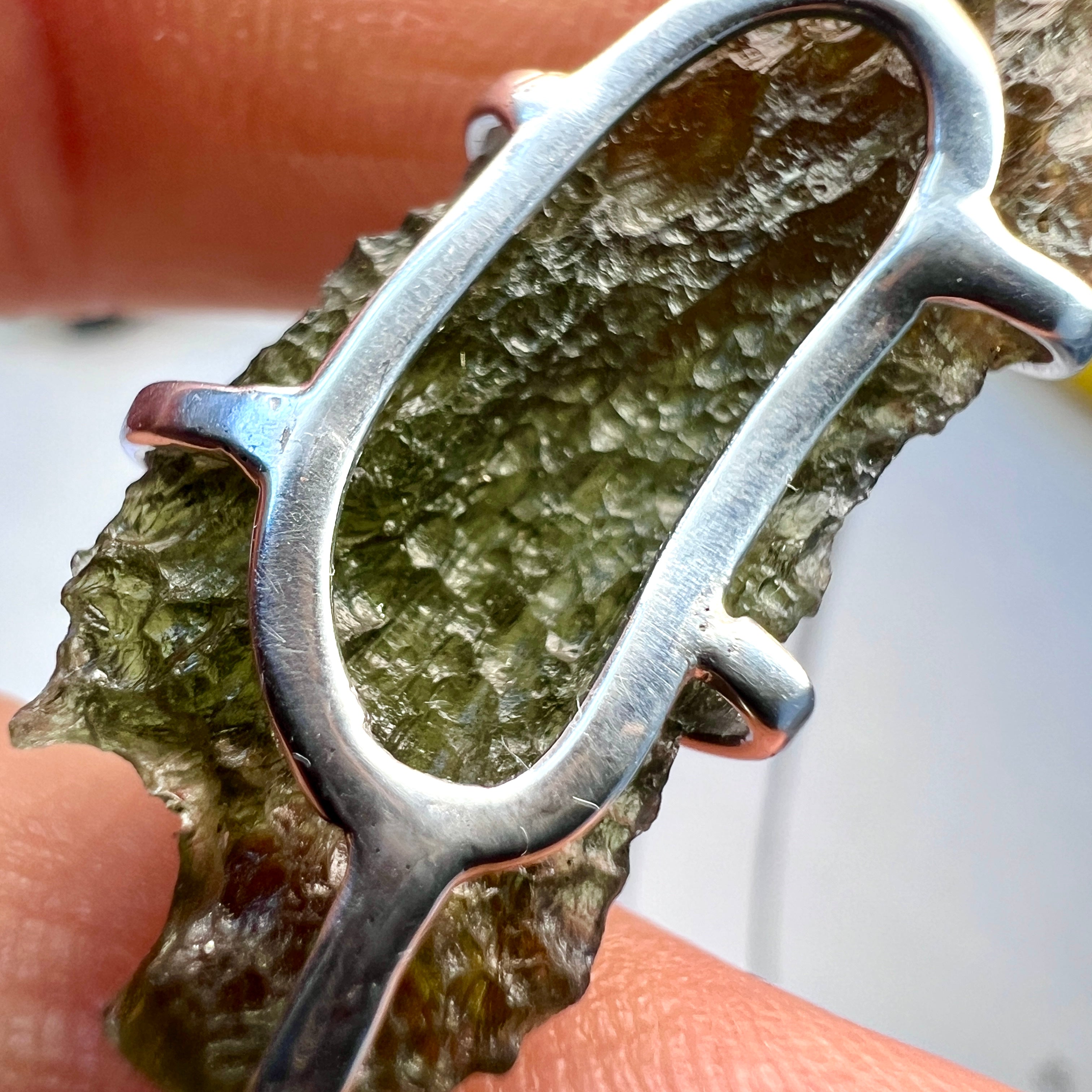The elegant tail-inspired setting highlights the stone’s natural shape and vibrant green color, creating a refined yet organic look. Each Moldavite is naturally formed, making every pendant one of a kind with unique textures and variations that add to its authenticity and character.