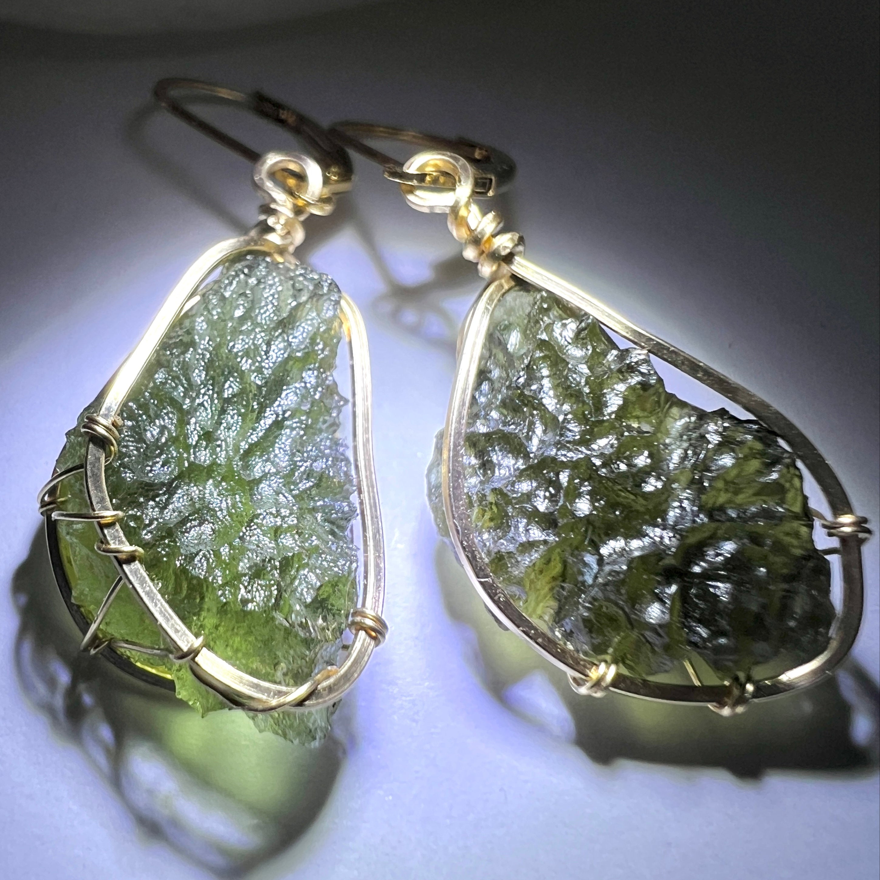 Elegant Moldavite Earrings in 14k Gold Fill