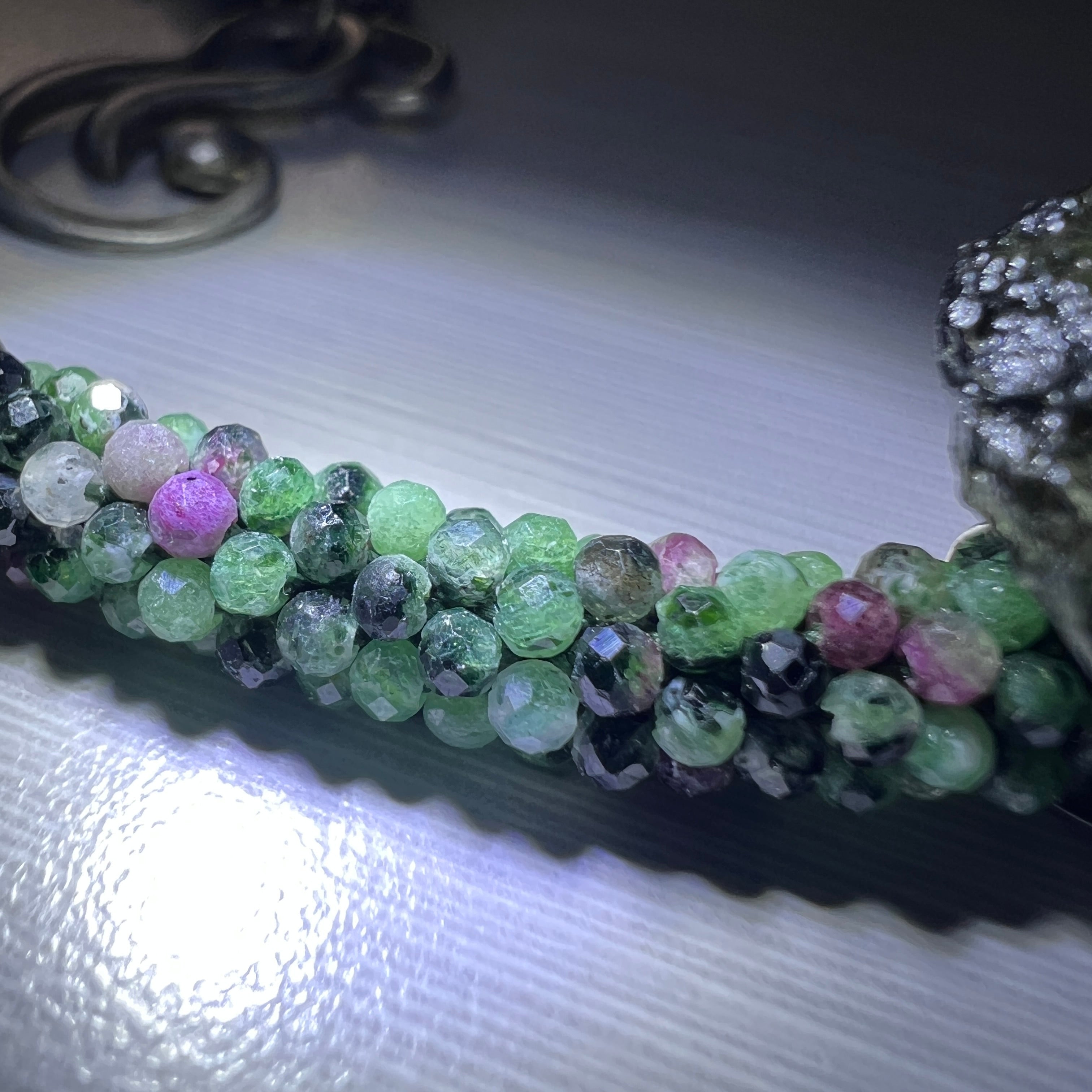 To care for your Moldavite jewelry, gently clean it with a soft cloth and mild soap. Avoid exposing it to harsh chemicals, extreme temperatures, or prolonged sunlight, as these can affect its color and structure. Store Moldavite separately to prevent scratches.