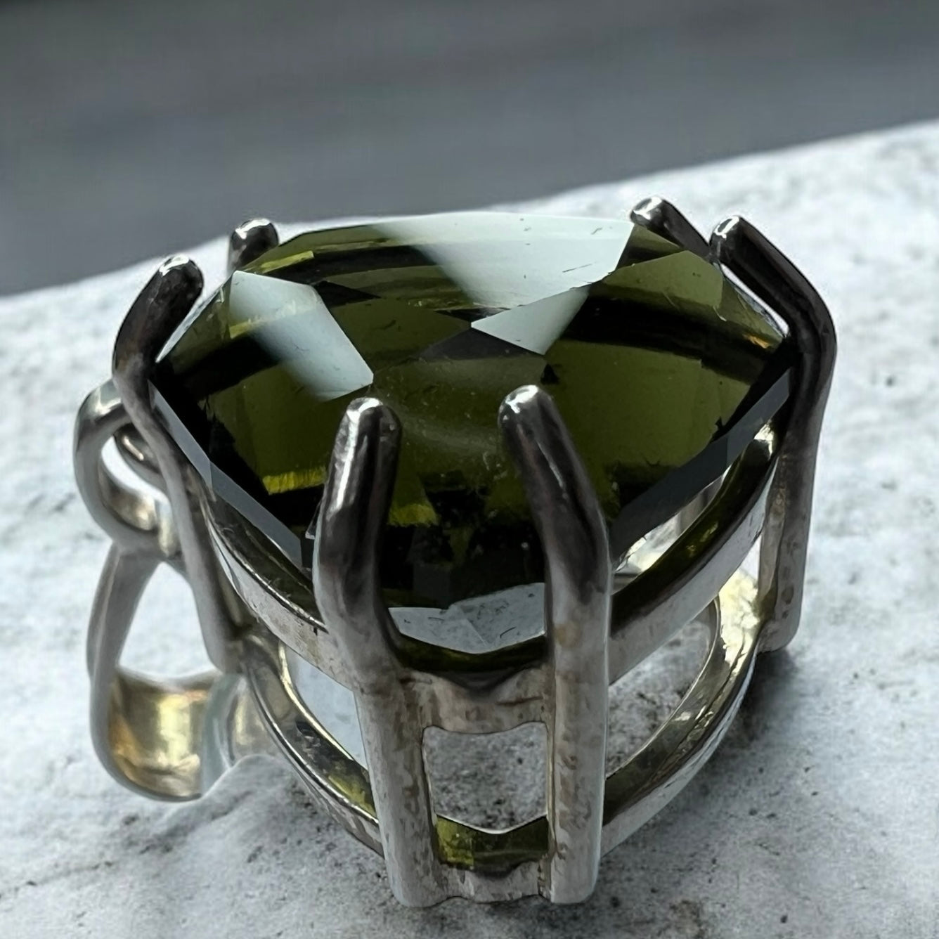 Its brilliant facets invite you to look within the stone, where you’ll find natural inclusions, bubbles, and internal textures — unmistakable signatures of authentic Moldavite born from a meteor impact over 15 million years ago.