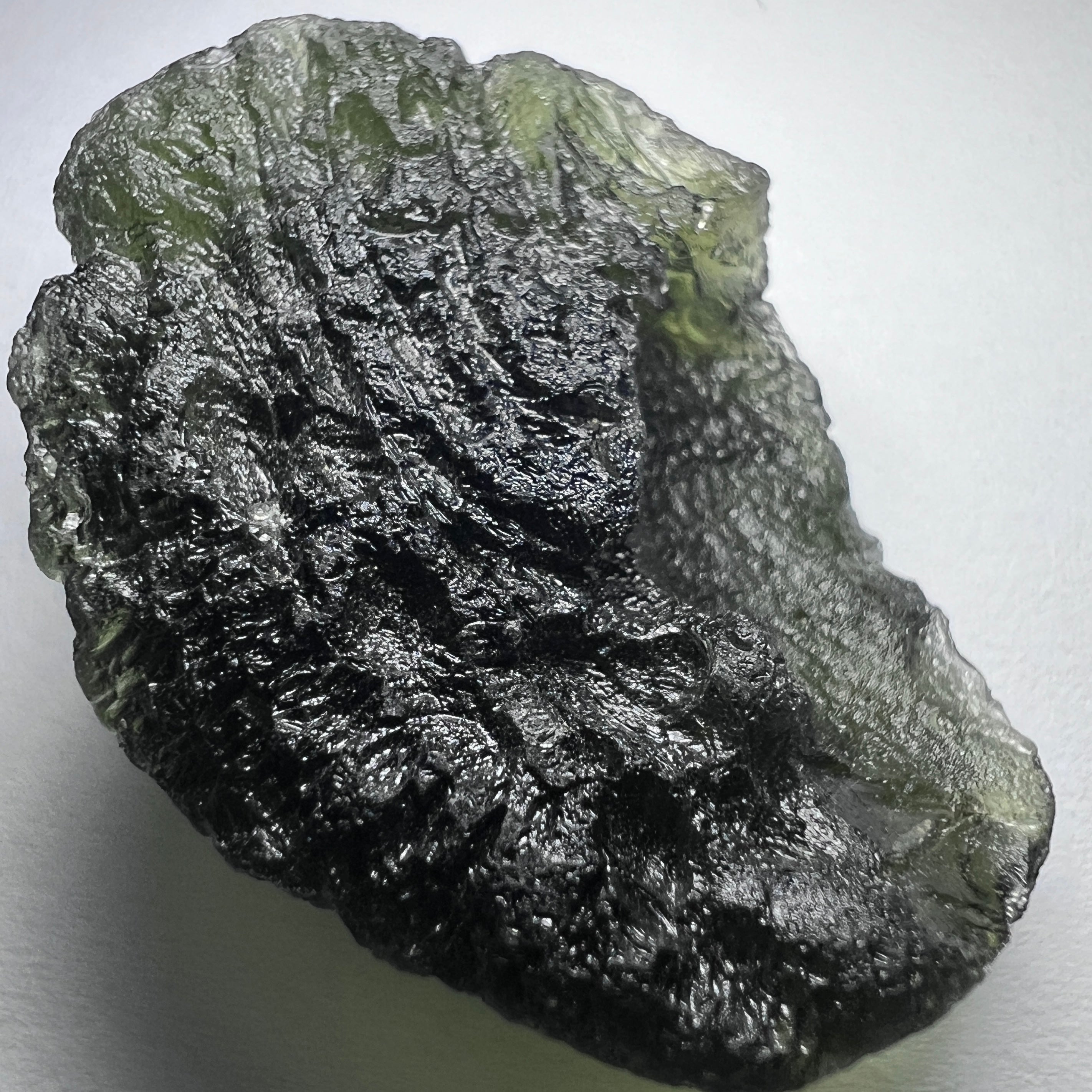 Unlike Moldavites that remained buried deep underground, untouched for most of their existence, this piece has spent much of its 15-million-year history close to the surface. The result is a naturally worn exterior that tells a genuine story of time, erosion, and survival. This is not damage — it is geological history preserved in glass, and a quality many seasoned collectors actively seek.