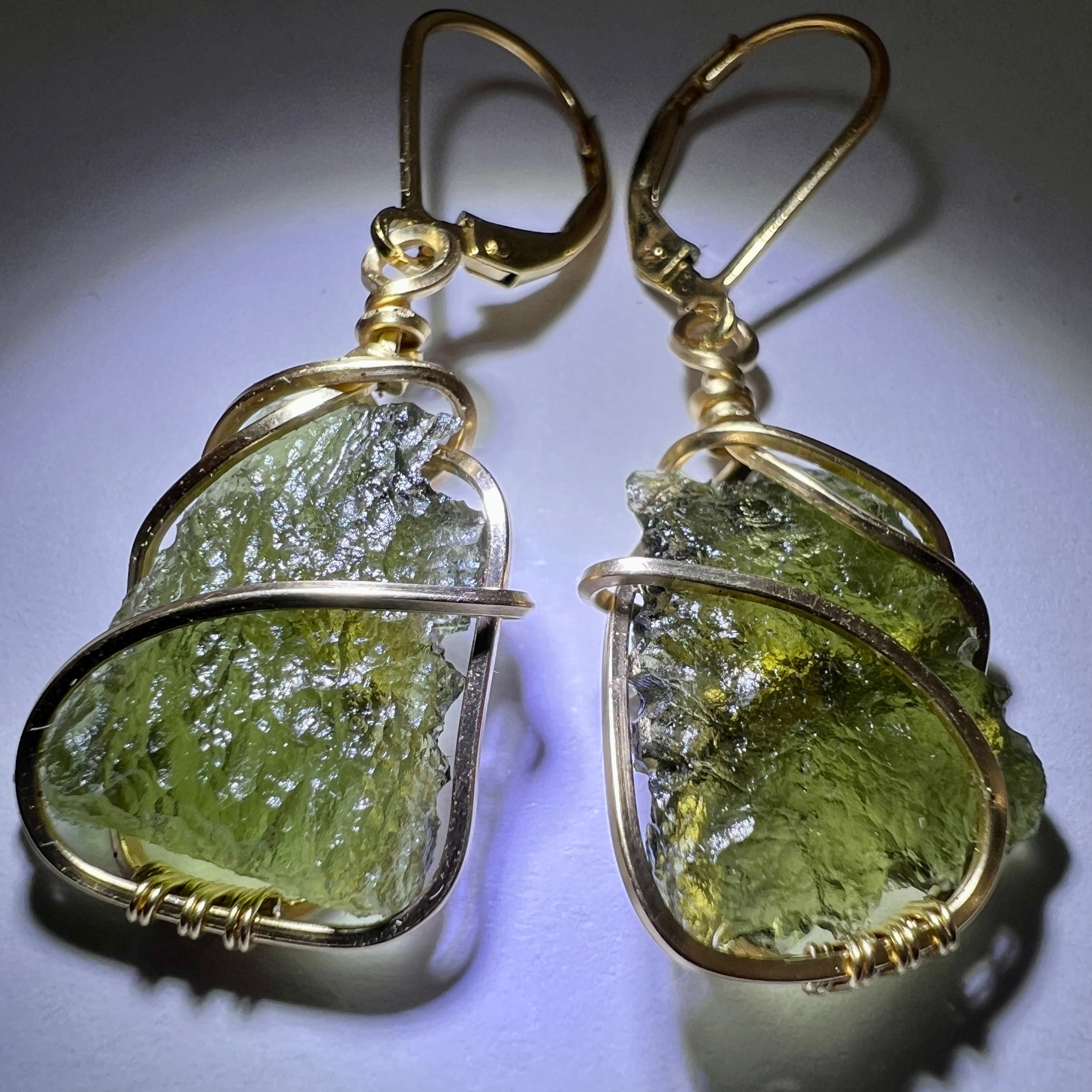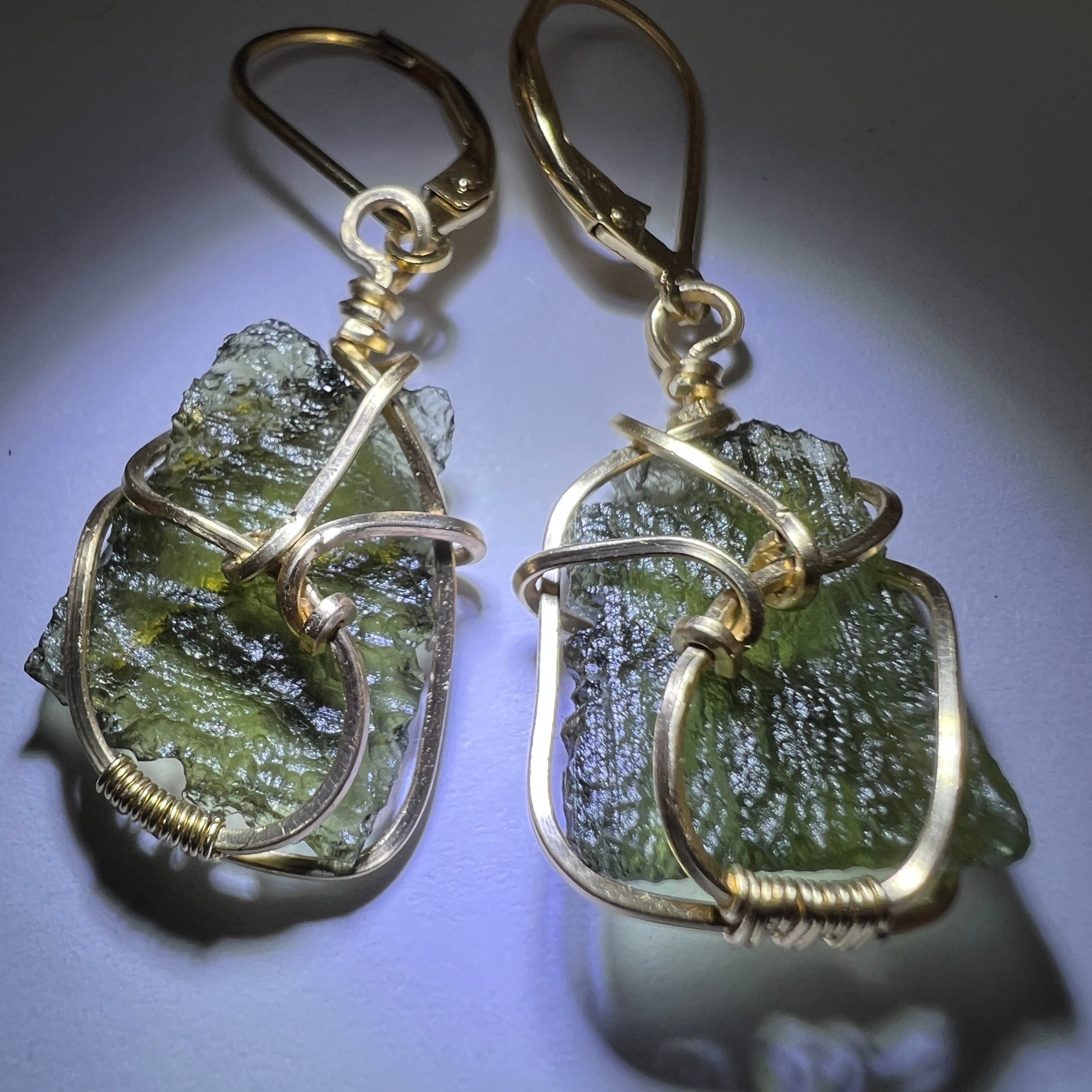 Graceful Moldavite Earrings in 14k Gold Fill