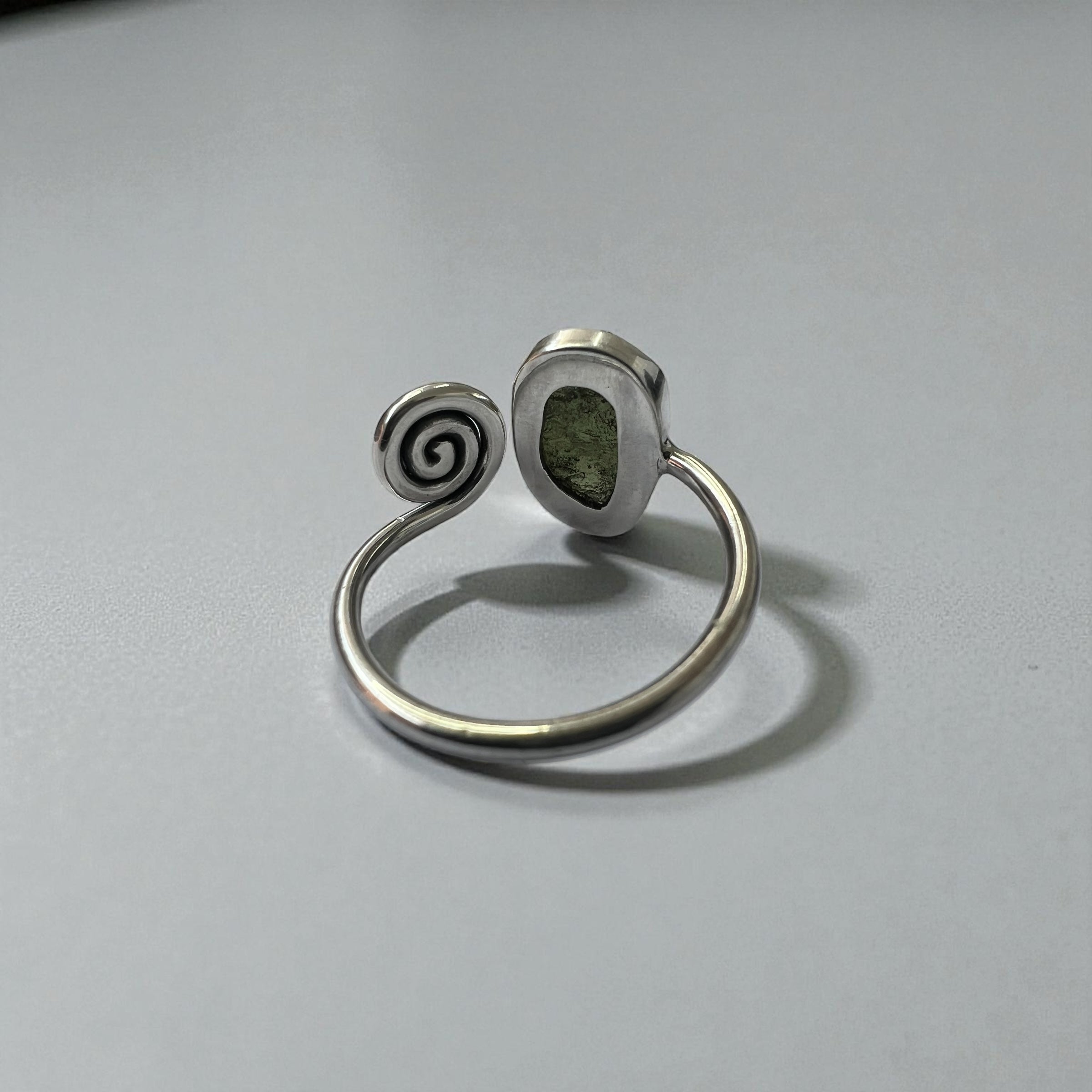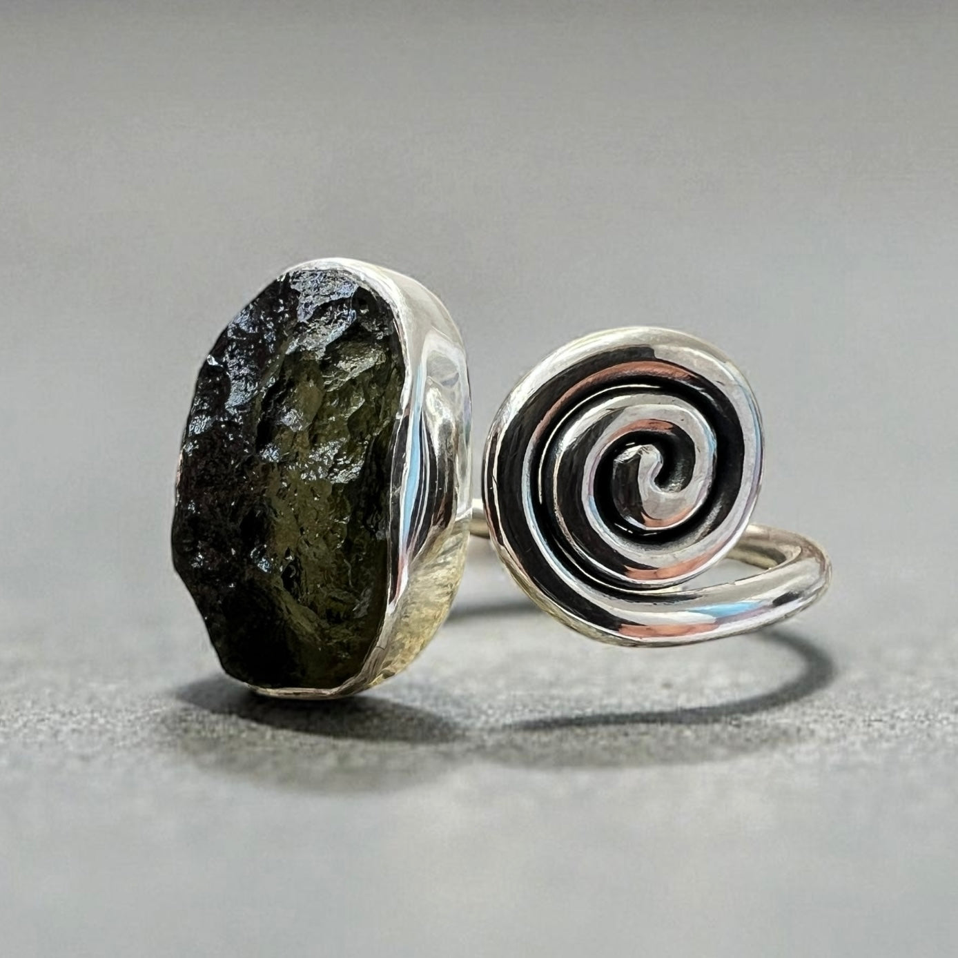 💫 Spiral Moldavite Silver Ring – Open Size 10 (U)