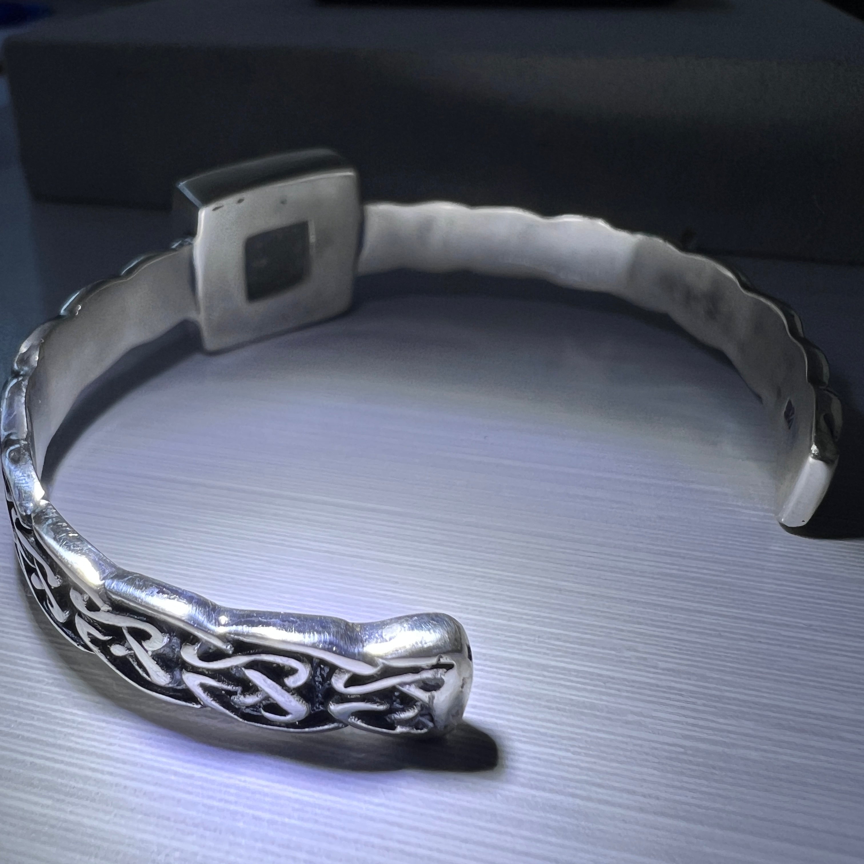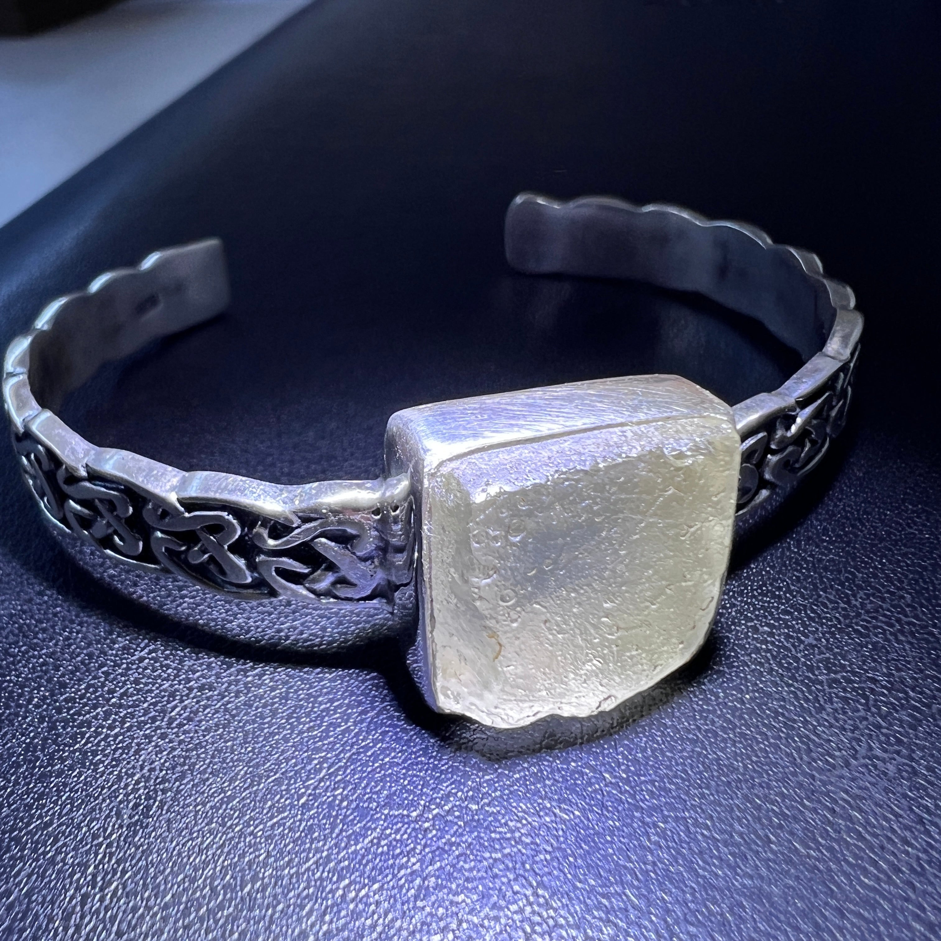 Sterling silver & Libyan desert glass bracelet; 20cm.