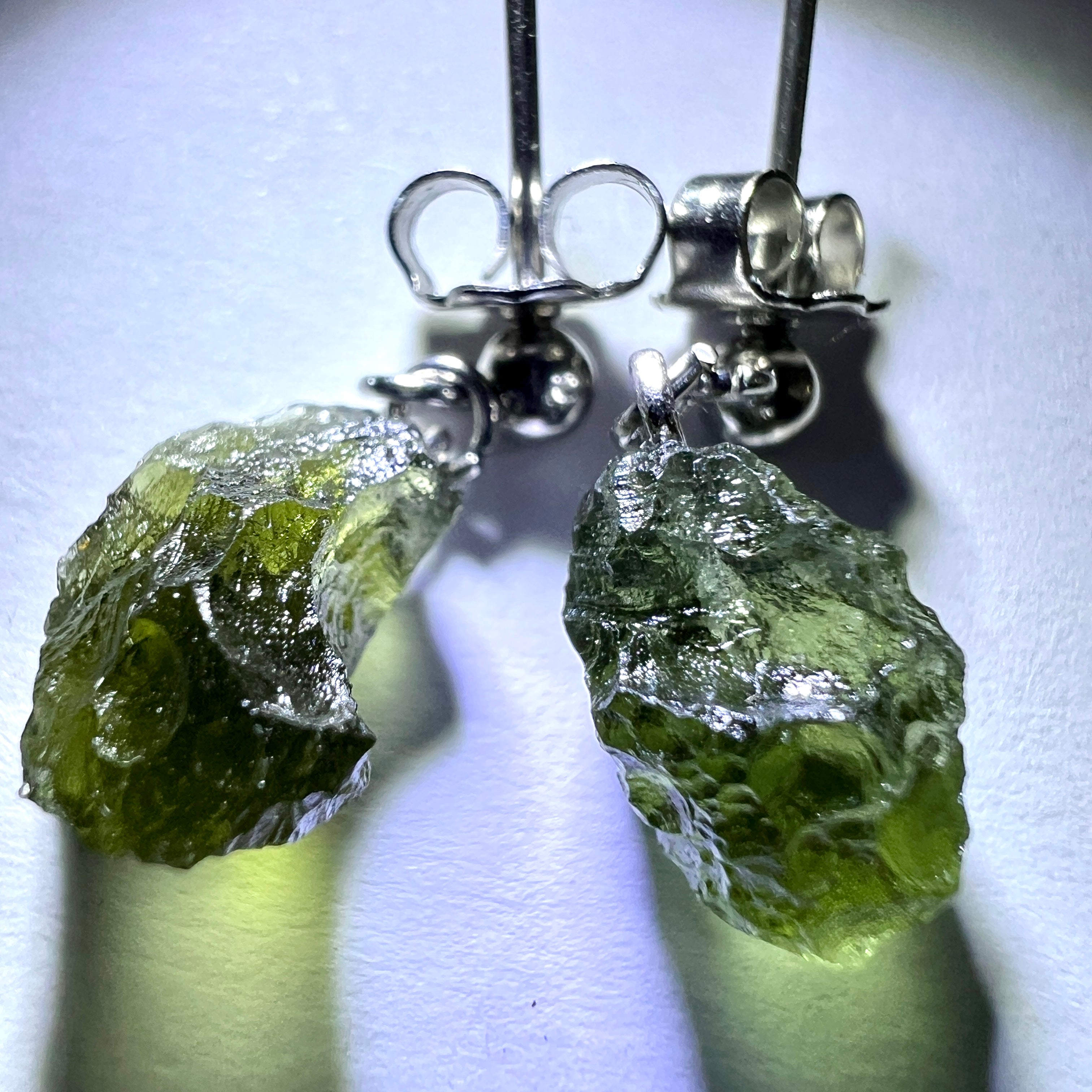 Moldavite is a rare tektite or meteoric glass, caused by an asteroid impact 15mil. years ago. The intense, 10,000°c+ temperatures of the strike vapourised the asteroid, target rock and sand, flinging the molten substance high into the atmosphere.