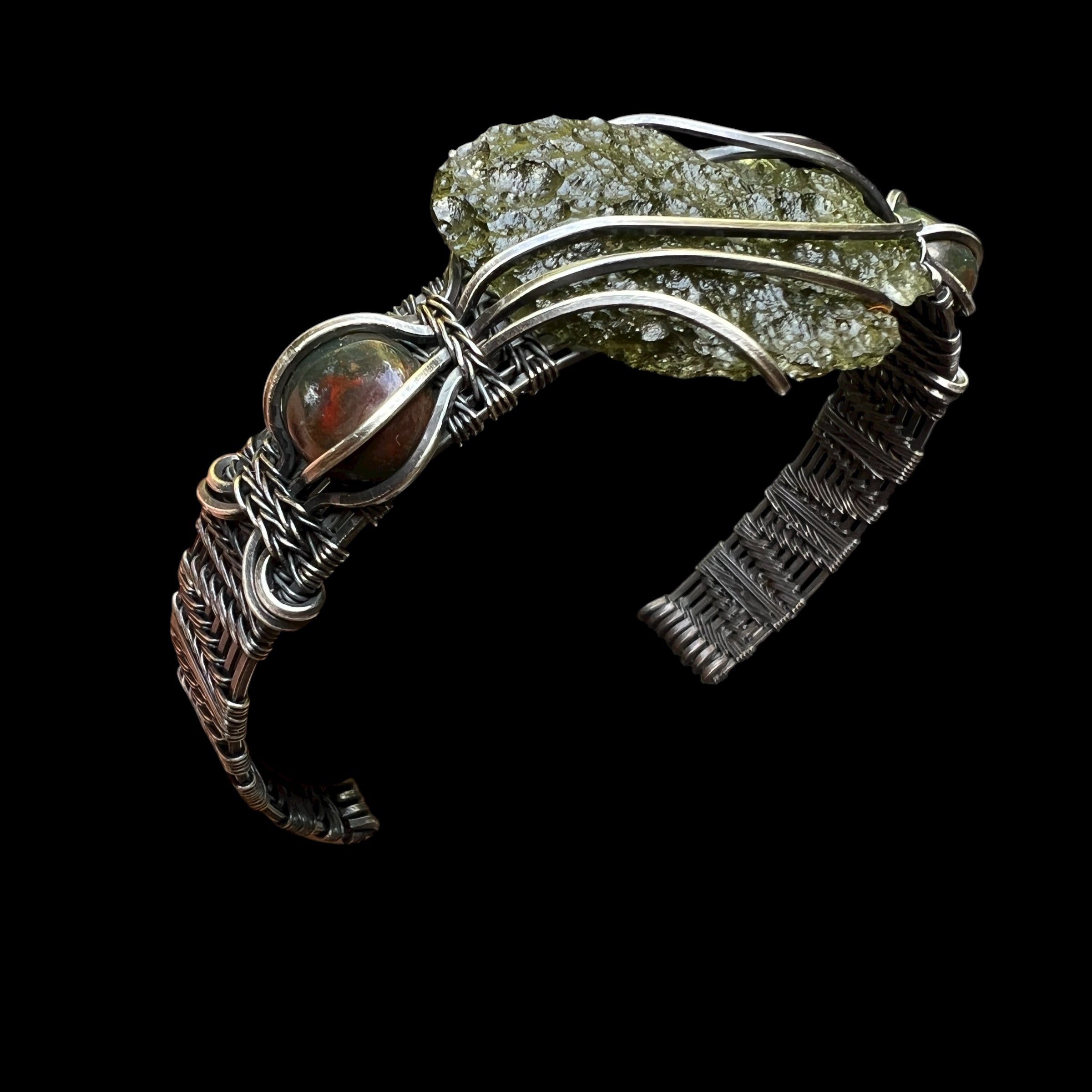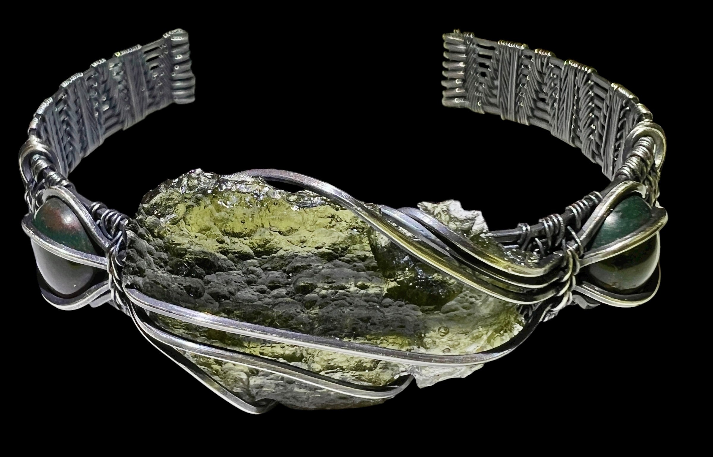 Exclusive Moldavite bracelet with Bloodstone accents.