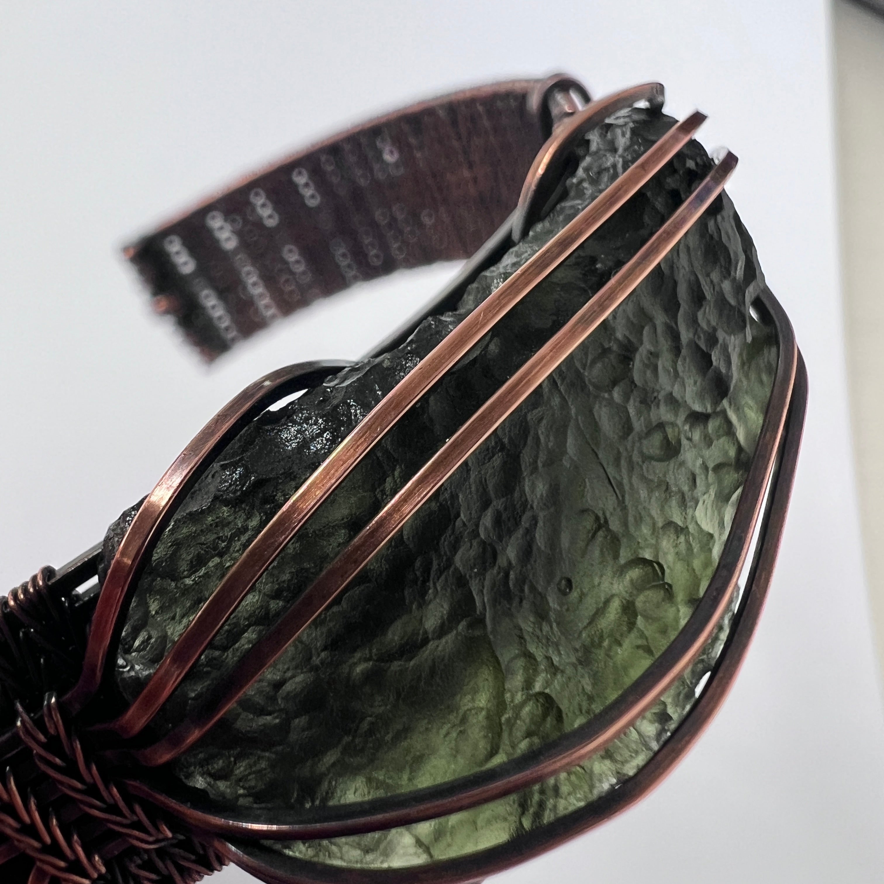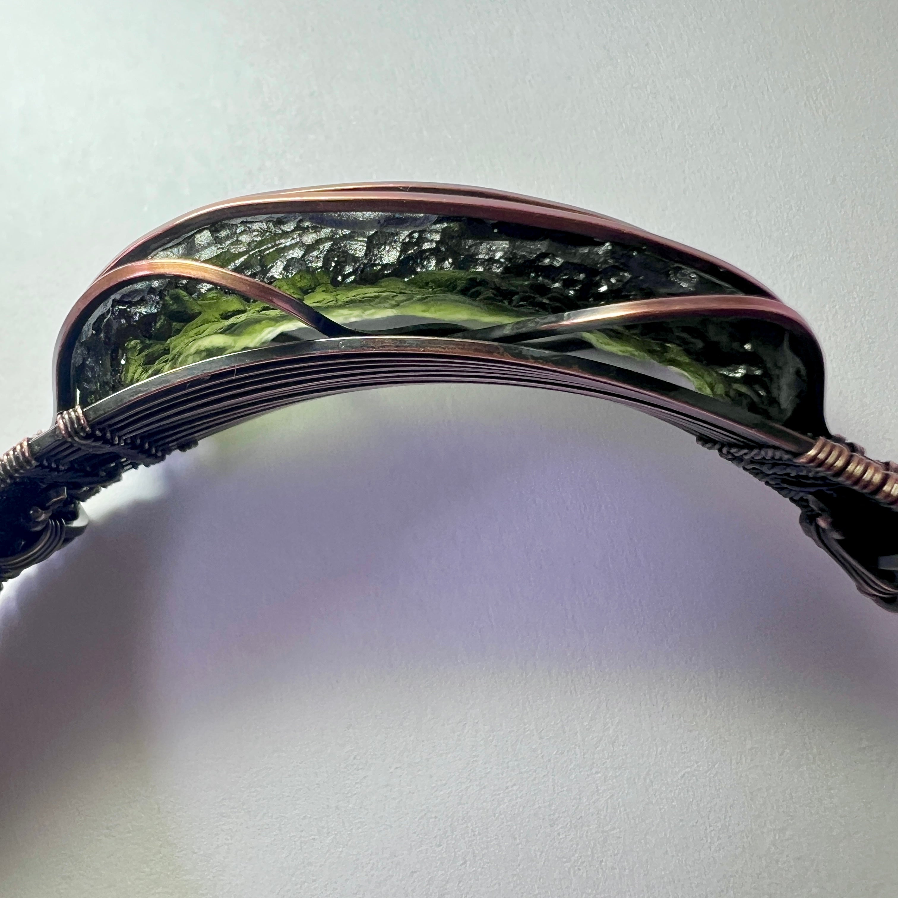 Presenting an extraordinary piece of wearable Moldavite art. This exquisite bracelet has been masterfully wrapped by hand in antiqued copper using our signature technique. Every strand has been painstakingly woven to achieve a depth and texture that is twice the thickness (15 mm) of our standard, and much-loved, design.