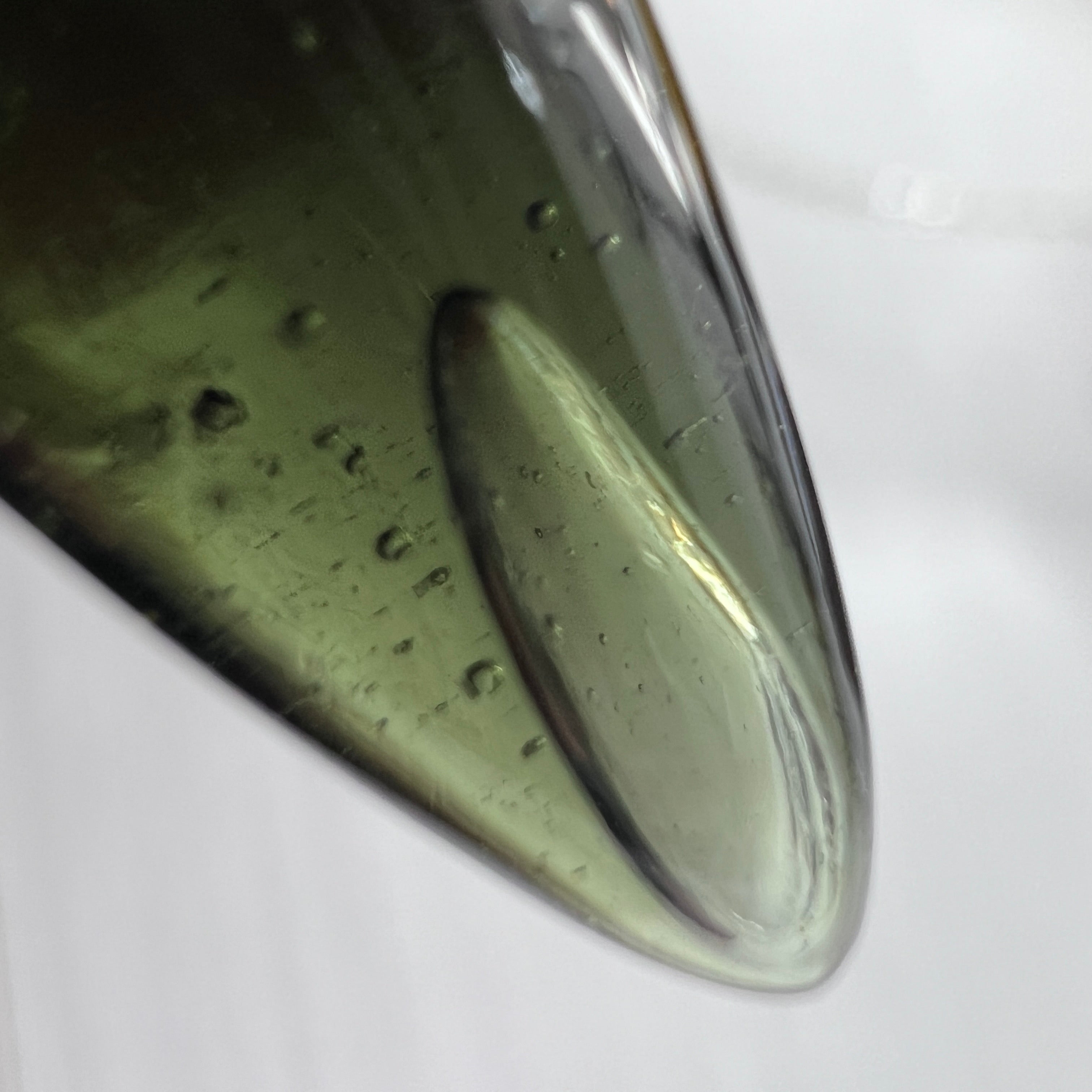 Moldavite is a rare tektite or meteoric glass, caused by an asteroid impact 15mil. years ago. The intense, 10,000°c+ temperatures of the strike vapourised the asteroid, target rock and sand, flinging the molten substance high into the atmosphere.